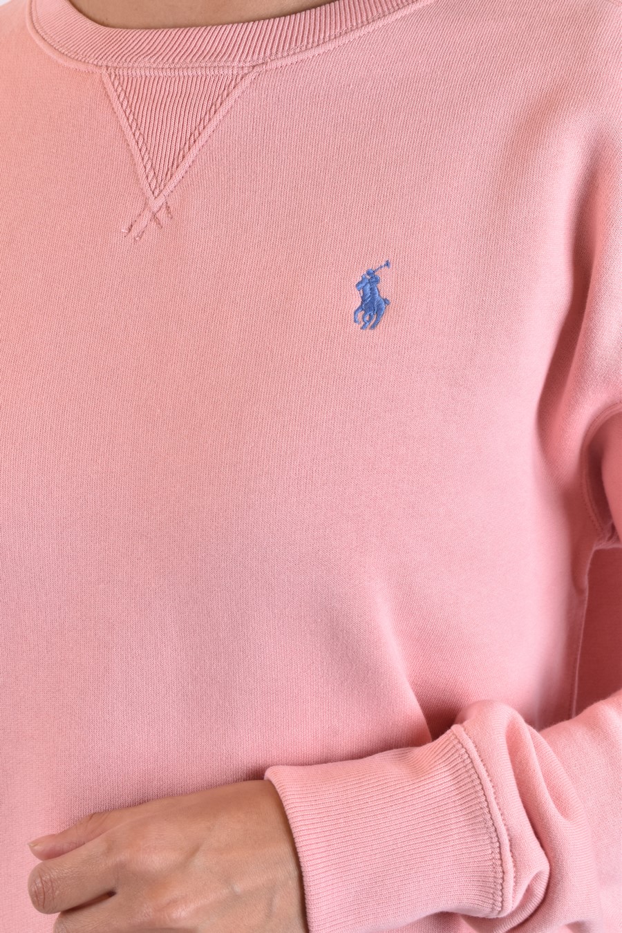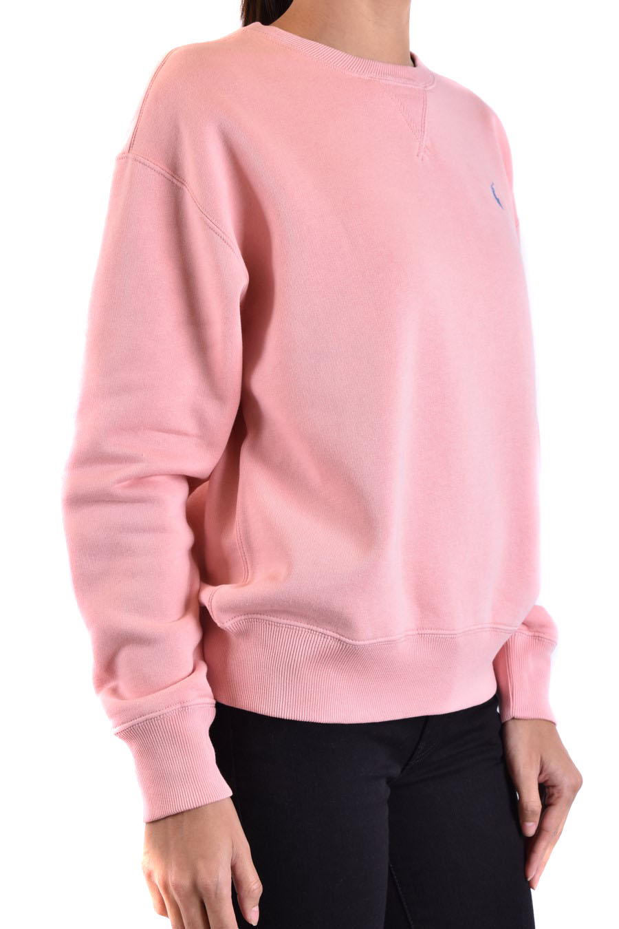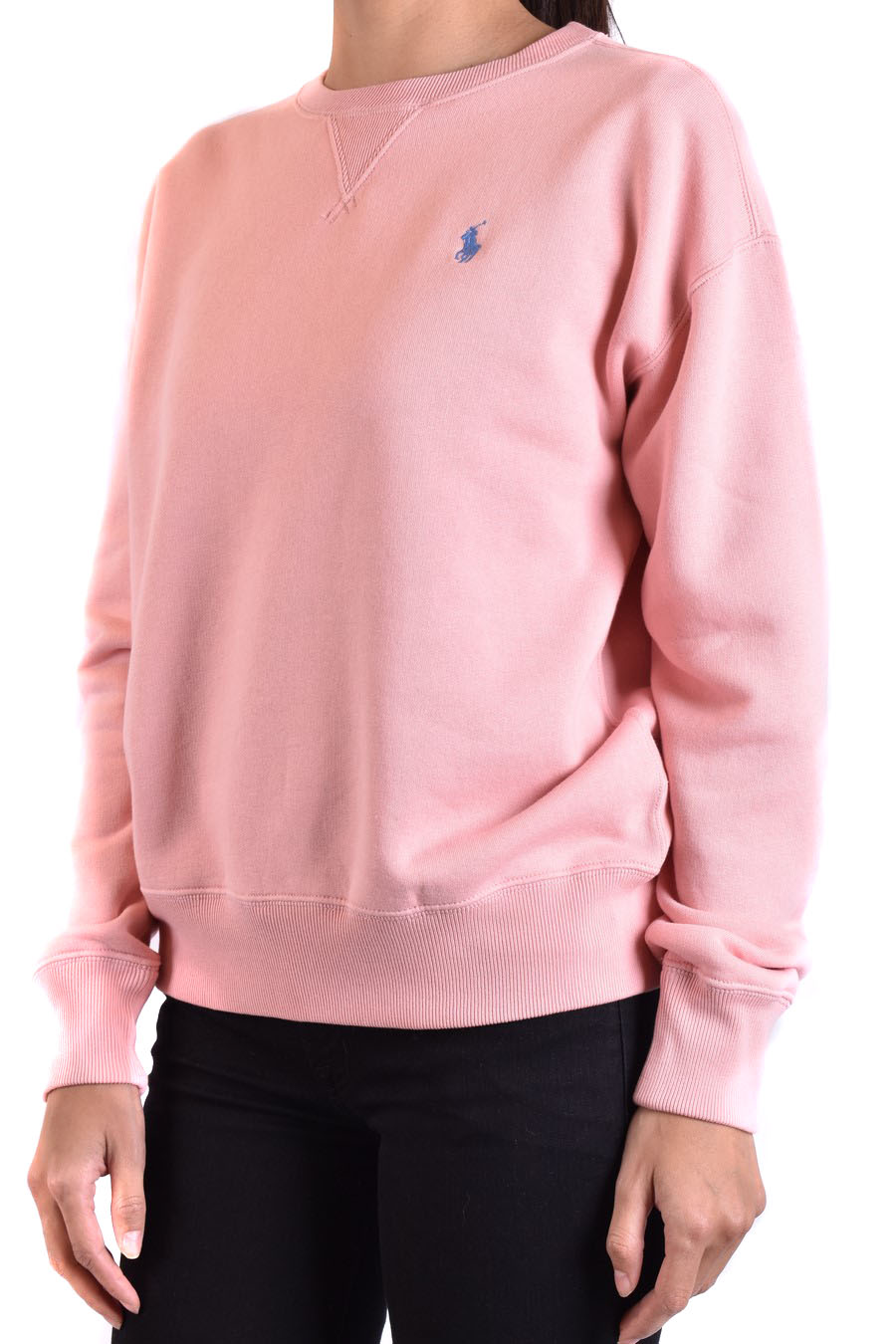 pink sweater from Polo Ralph Lauren featuring round neck, long sleeves, bottom cuffs, slim fit