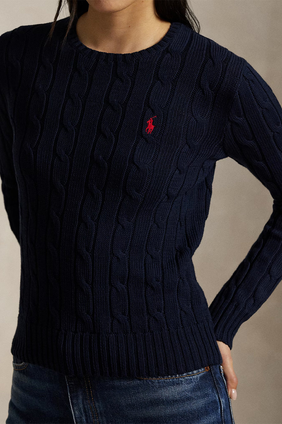 This slim-fit Ralph Lauren polo shirt features a crew neck and is crafted from soft combed cotton with a cable knit pattern.