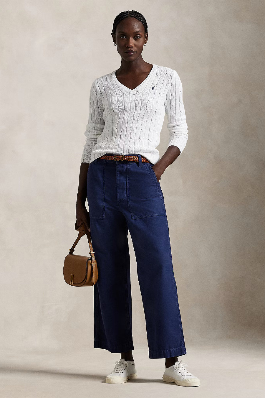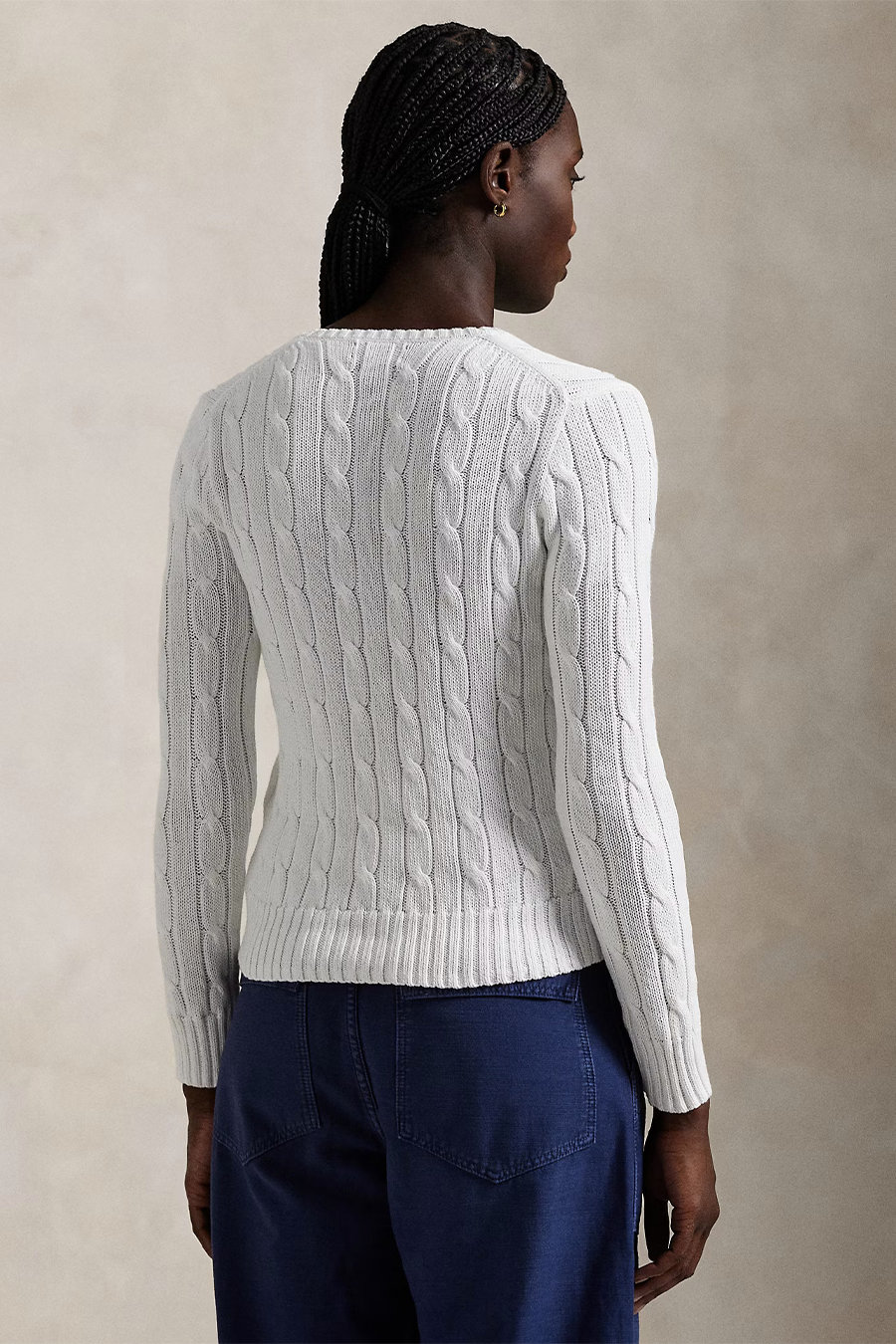 This Ralph Lauren polo shirt in soft combed cotton features a V-neck, cable knit detailing and a fitted silhouette with an embroidered pony on the left side of the chest.