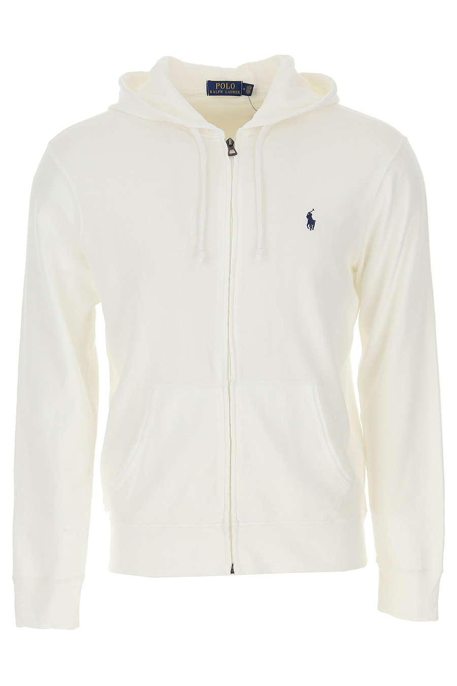 white full zip hoodie from Polo Ralph Lauren featuring front zip fastening, long sleeves, blue logo on the chest