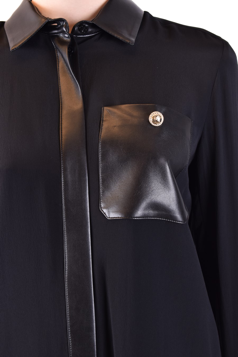 black shirt from Simona Corsellini featuring front button fastening, classic collar, front button fastening, long sleeves, one side to the front