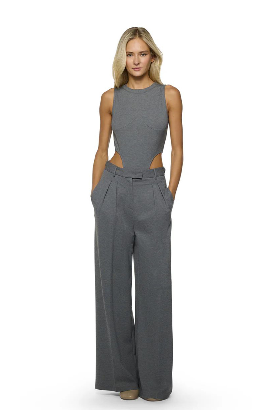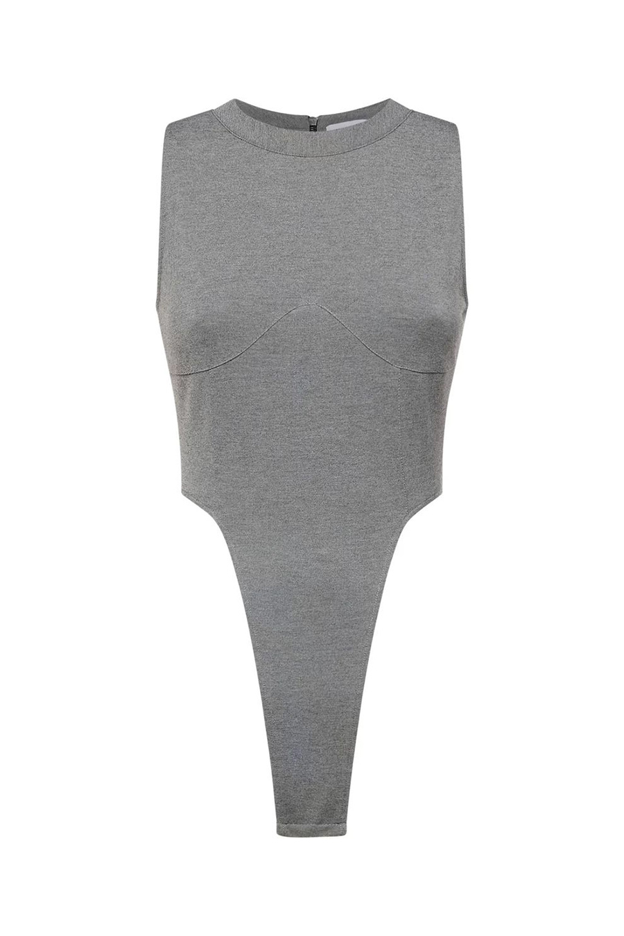 Simona Corsellini sleeveless bodysuit in Milan stitch with round neckline, zip fastening at the back and hooks.
