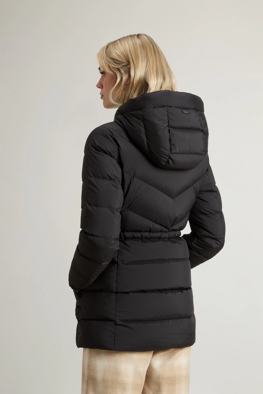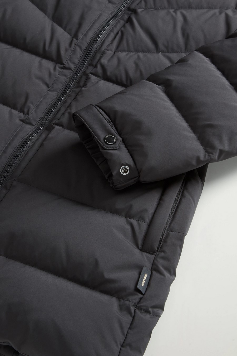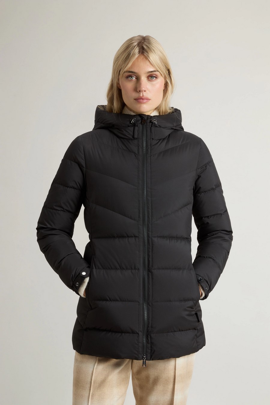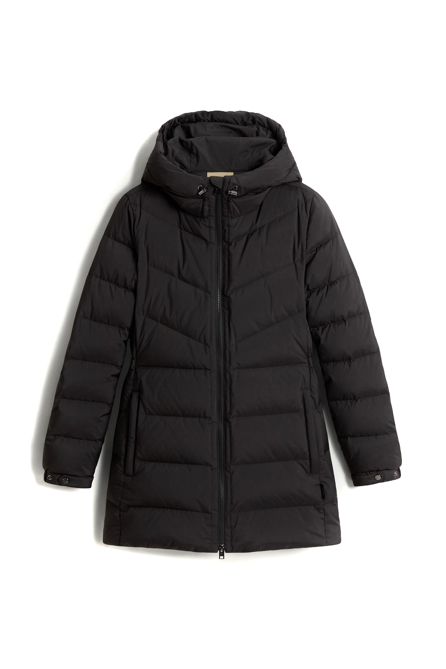 Shirley Woolrich down jacket made from water-repellent microfibre, duck down padding, two-way zip fastening and a hood finished with a logo tag.