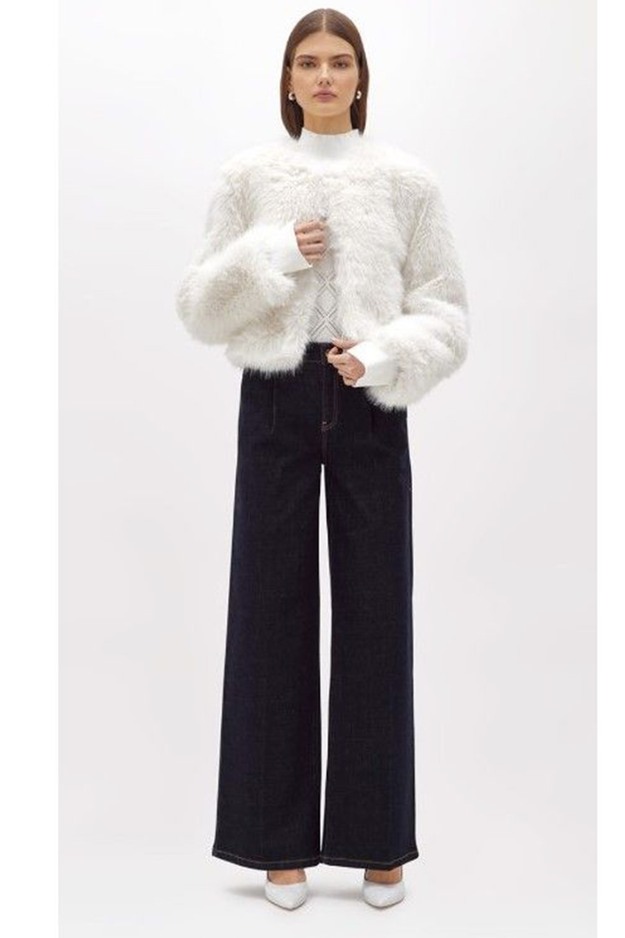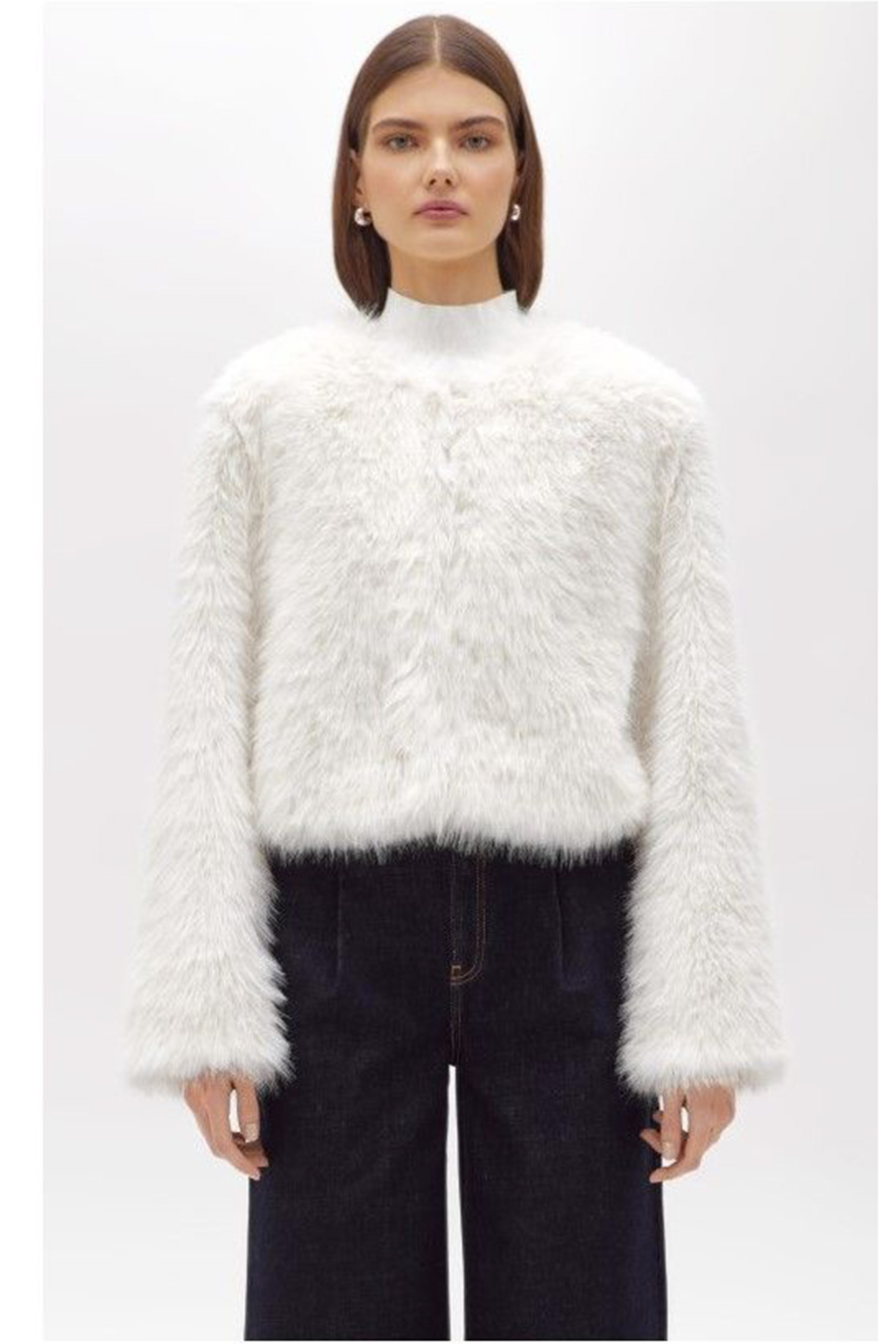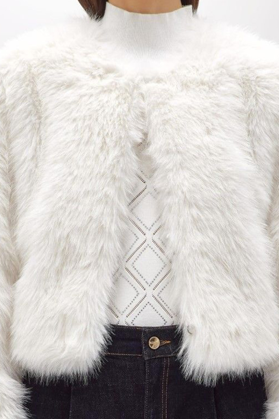 Blugirl jacket in faux fur, straight cut, round neck, long sleeves, hook closure, lining.