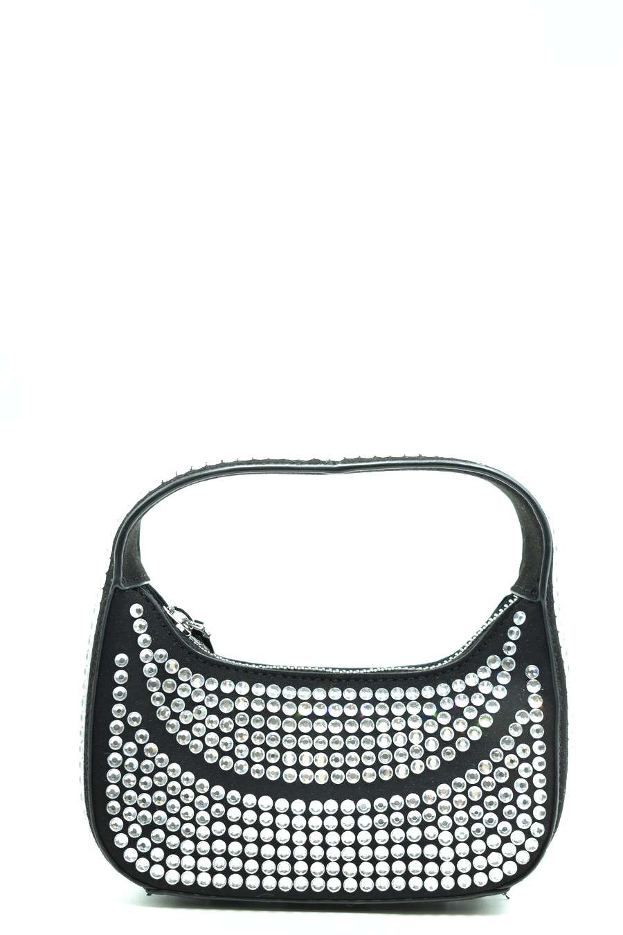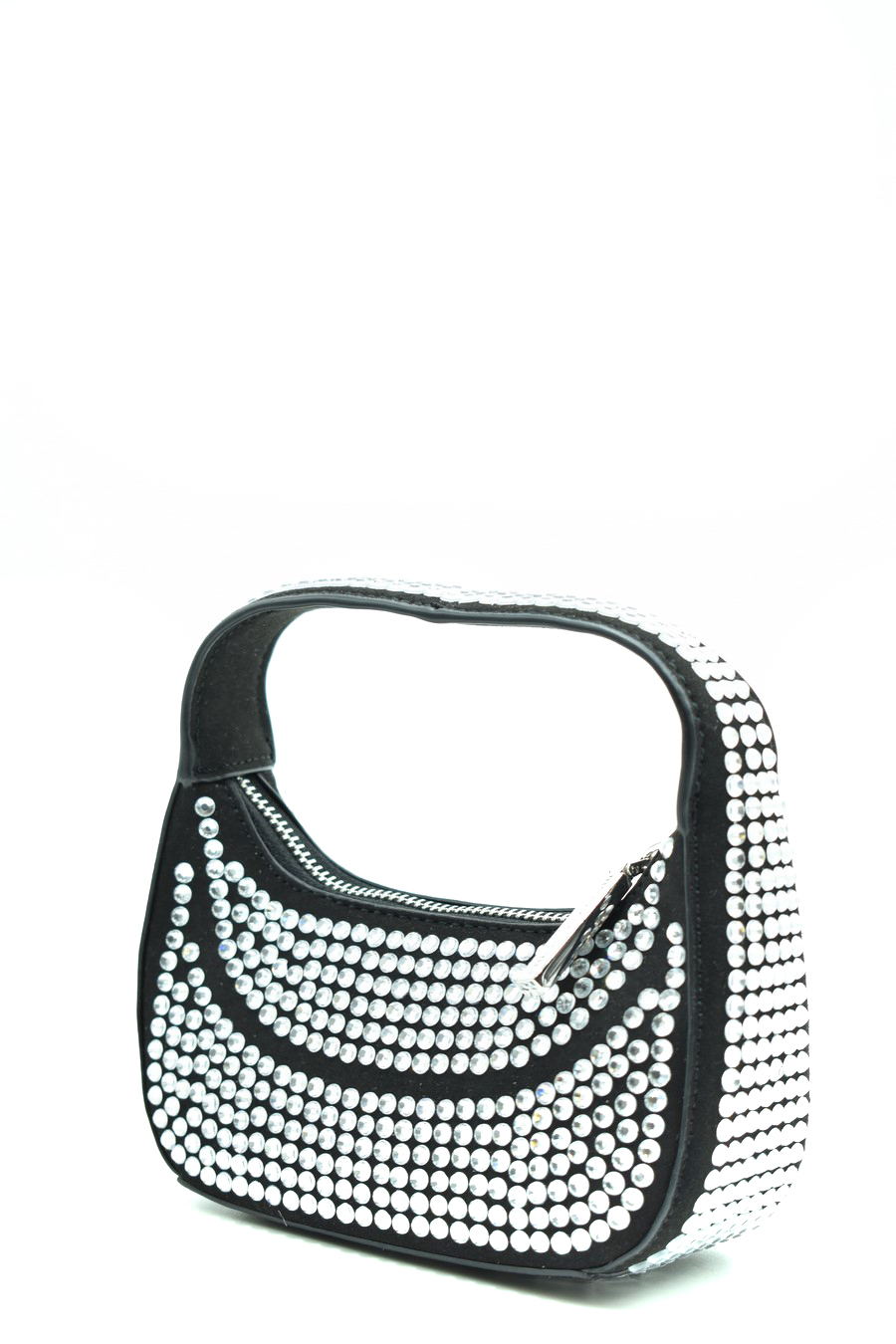black mini bag from Chiara Ferragni featuring silver-tone hardware, rhinestone embellishment, branded zip zip puller, internal logo patch, top zip fastening, main compartment