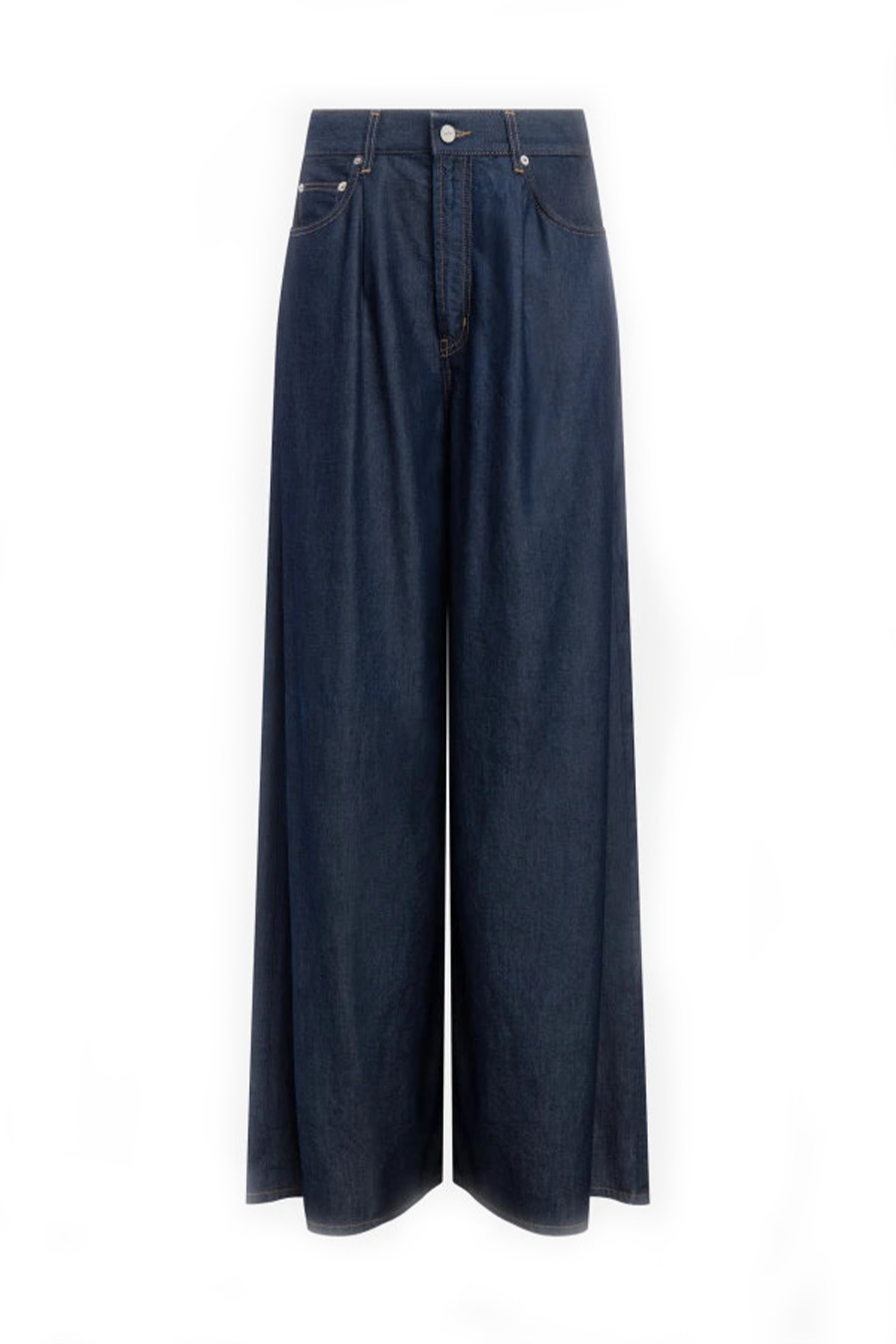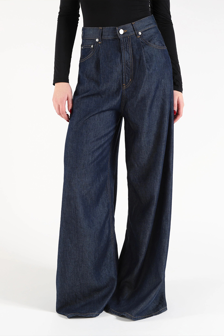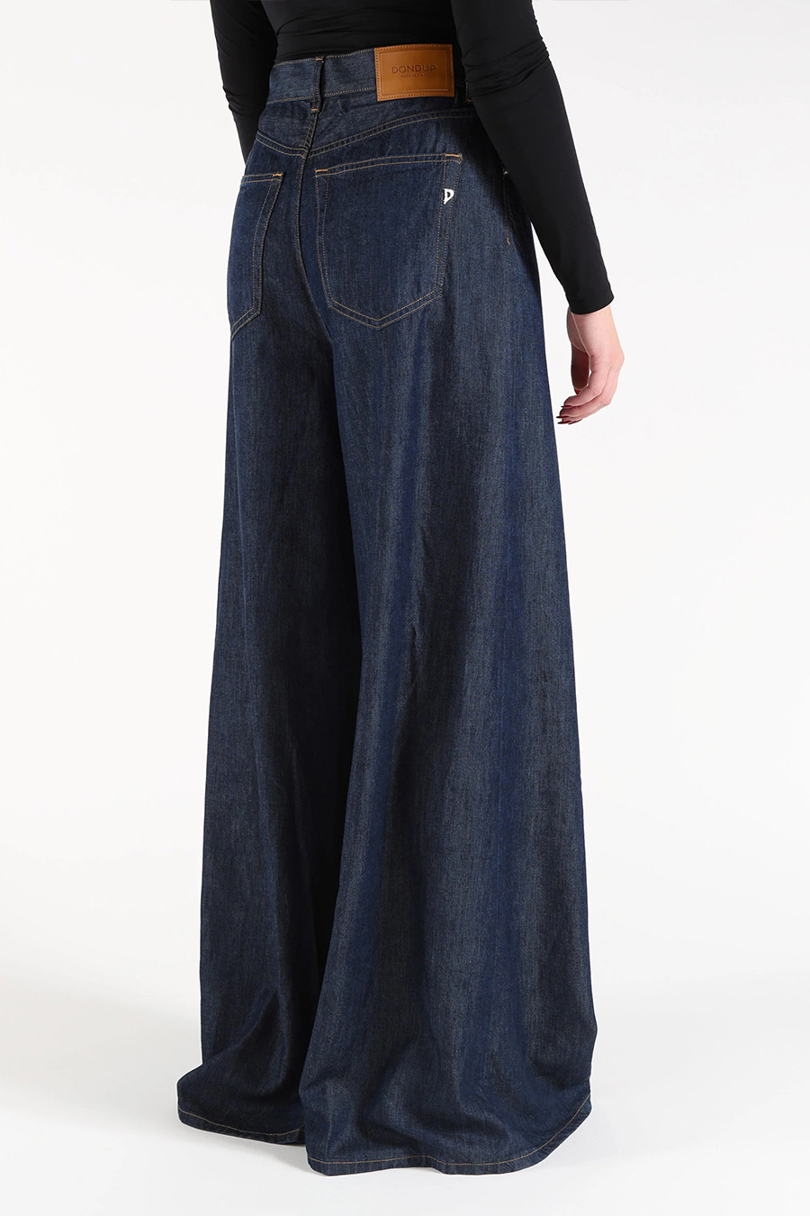 Maggie wide-leg jeans in fixed lyocell denim by Dondup, five pockets, wide-leg fit, regular waist, palazzo leg, front pleats.