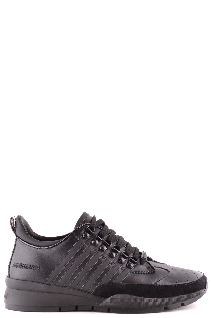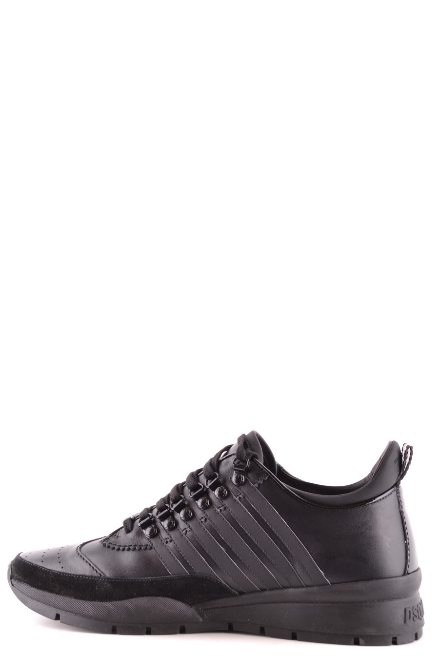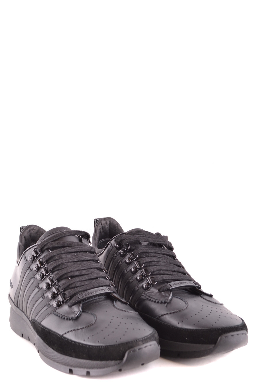 low sneakers with leather stripes in same colour, laces, logo on the side, patent leather insert back