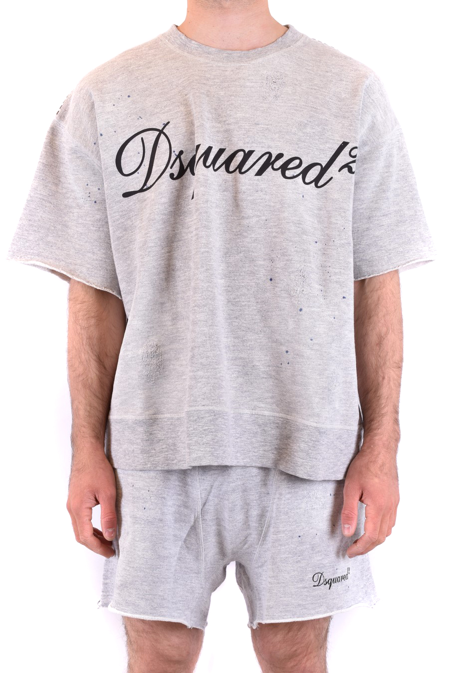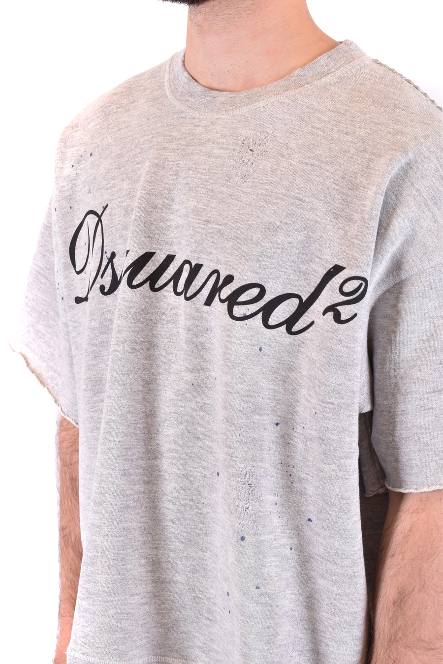 grey sweatshirt from Dsquared2 featuring round neck, short sleeves, logo printed on the front, studs on the shoulder, oversize fit