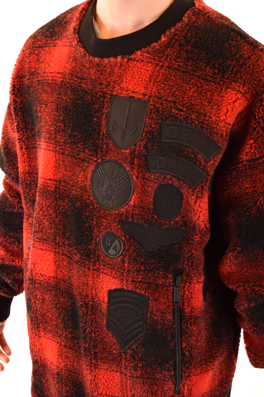 black/red tartan style sweatshirt from Dsquared2 featuring ribbed round neck, long sleeves, elasticated fabric cuffs, patches applied in front, zip pockets at the sides, waist adjustable by drawstring