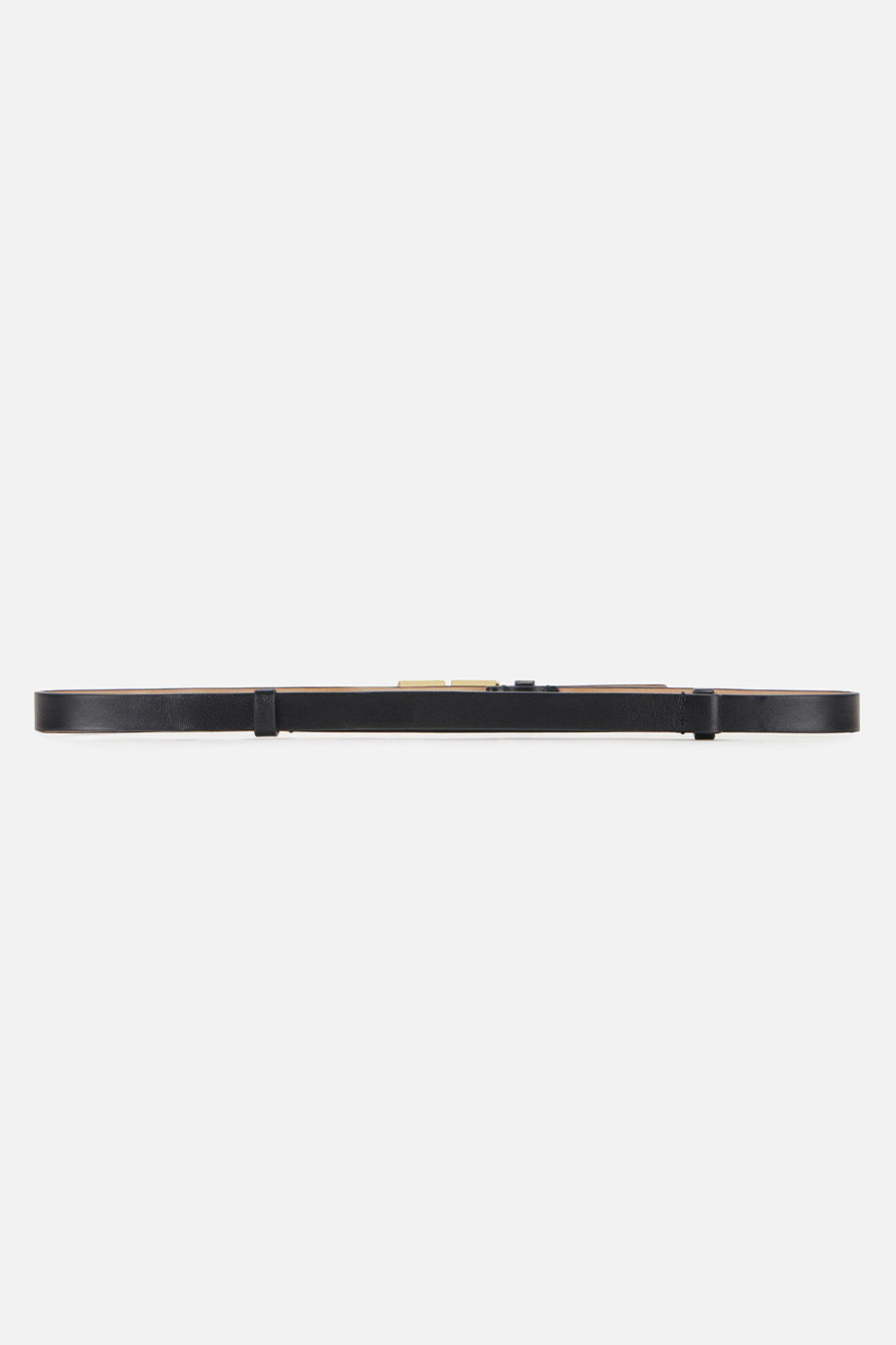 Elisabetta Franchi leather belt made from smooth leather, high-waisted, embellished with a jewelled plaque featuring the logo and rhinestones on the front.
