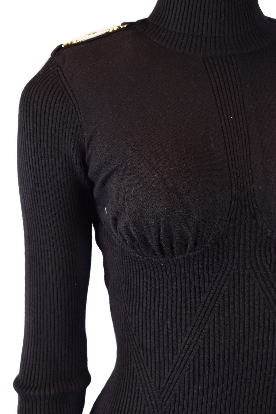 black dress from Elisabetta Franchi featuring high collar, long sleeves, slim fit