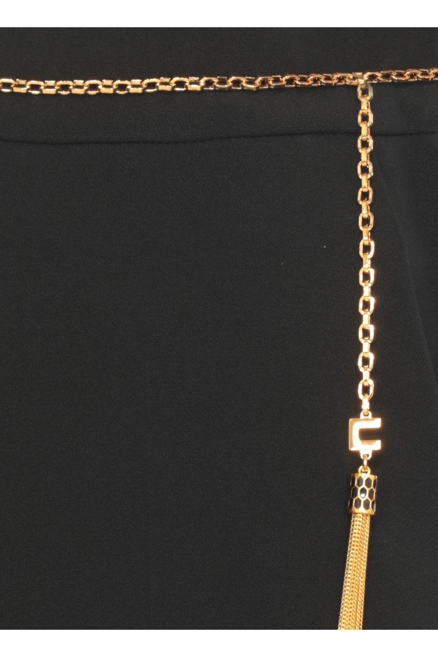 Lightweight crêpe shorts with Elisabetta Franchi jewelled chain, pockets, and waist embellished with a chain belt featuring the logo and a pendant tassel.