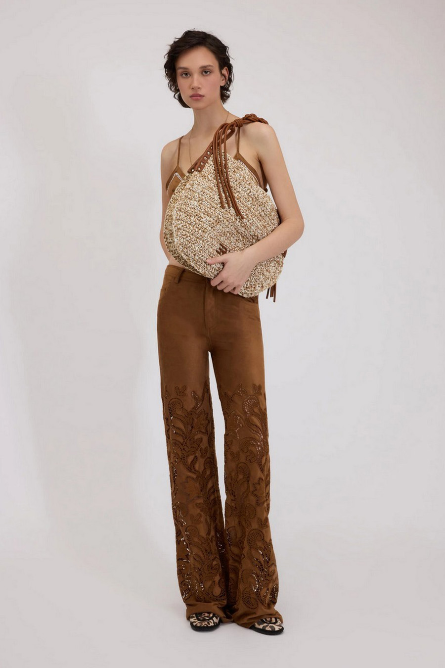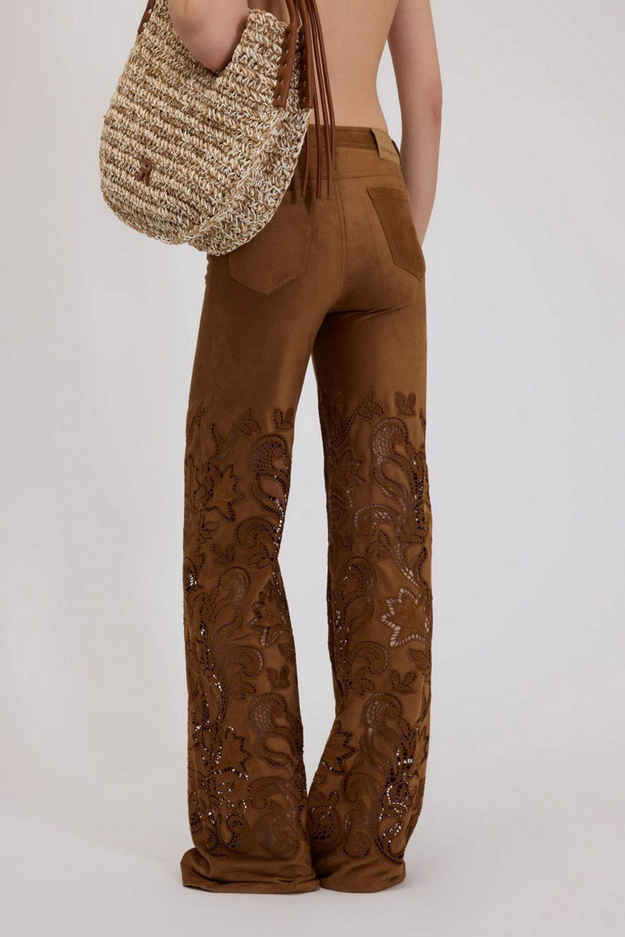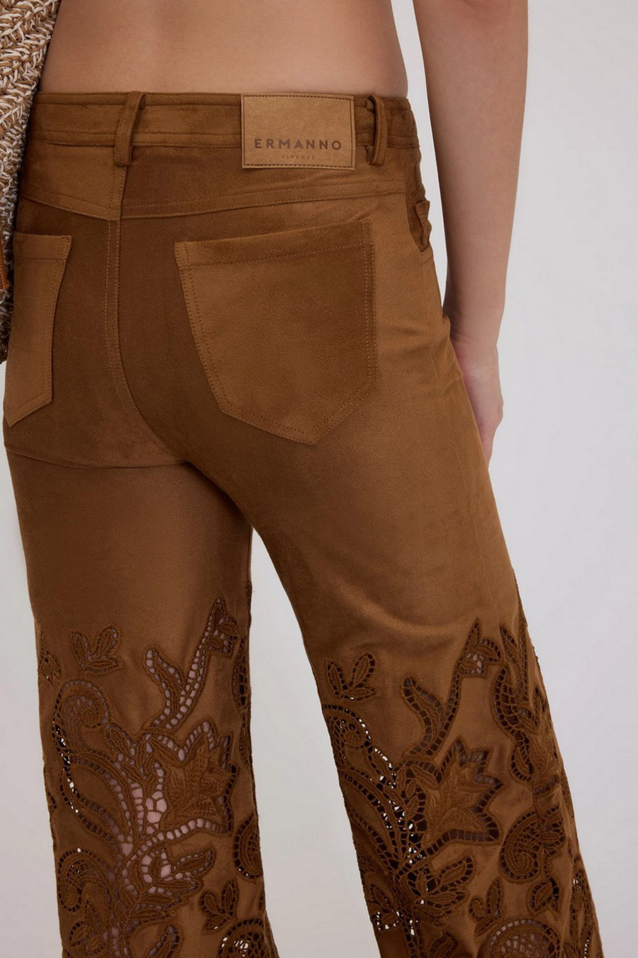 Suede-effect flare trousers with broderie anglaise by Ermanno Scervino