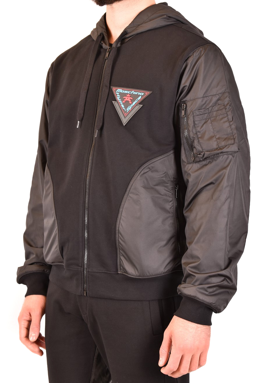 black cotton blend hoodie from Moschino featuring drawstring hood, front zip fastening, long sleeves,logo patch to the side, straight hem
