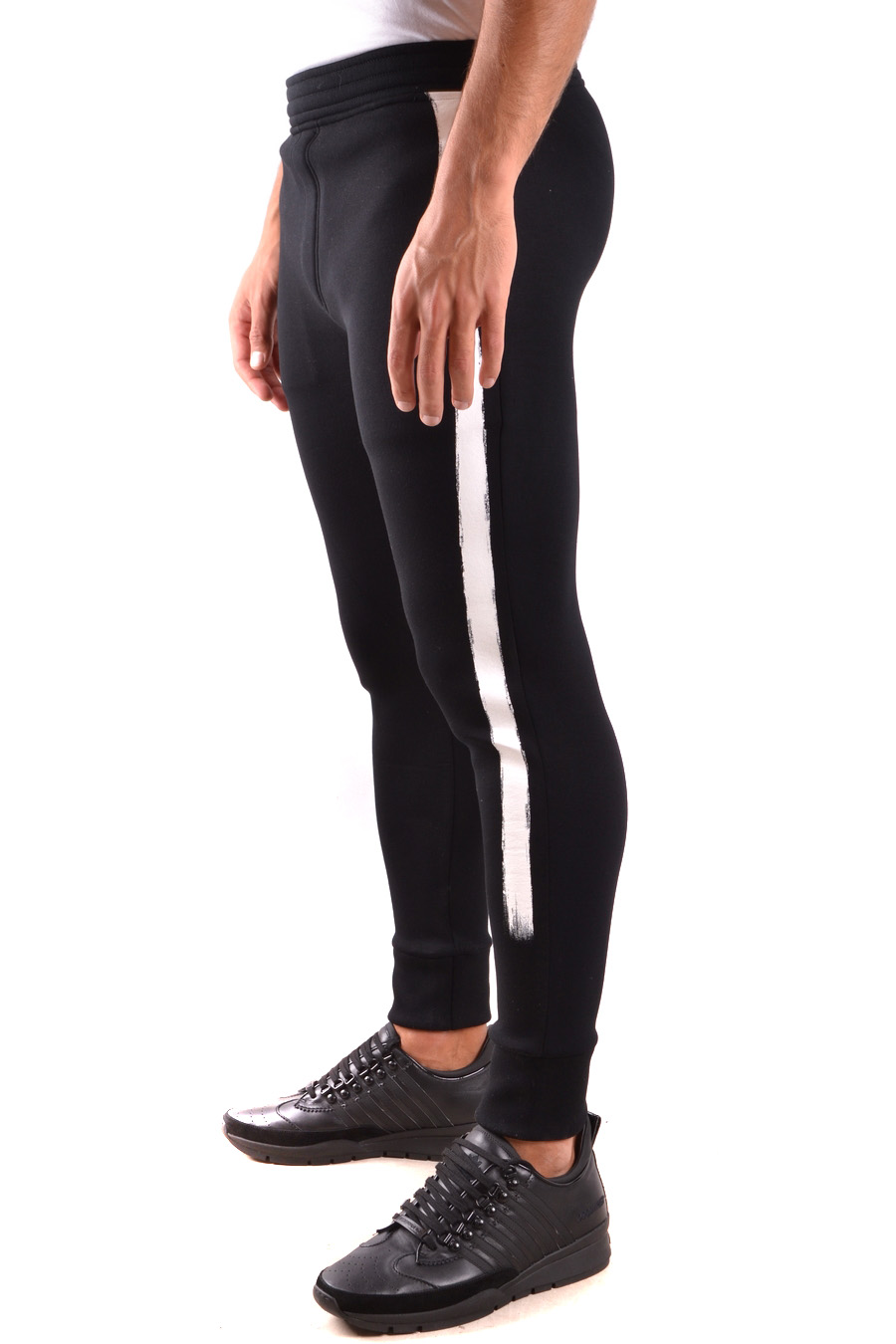 low crotch slim fit trousers with latera bands