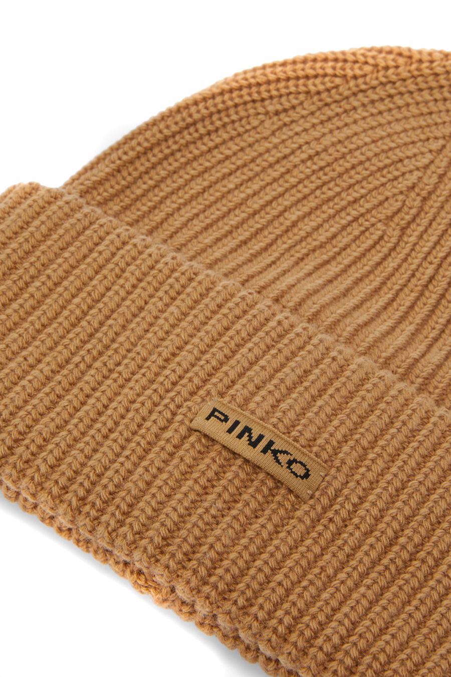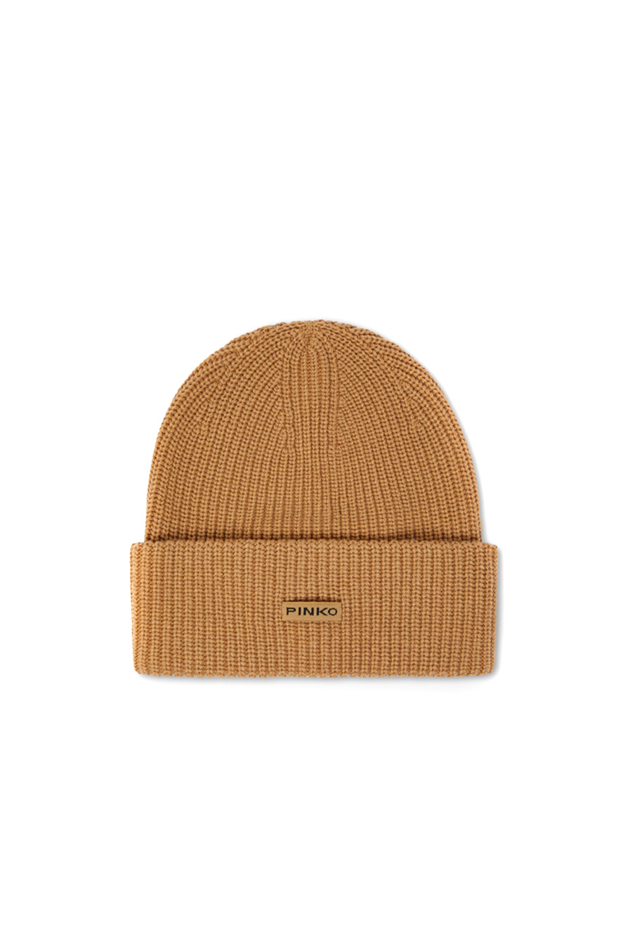 Pinko beanie-style hat made from soft wool, cashmere and viscose blend yarn that is extremely soft to the touch. The model features an all-over ribbed knit that creates a three-dimensional effect, with a tone-on-tone label with PINKO lettering logo on the front.