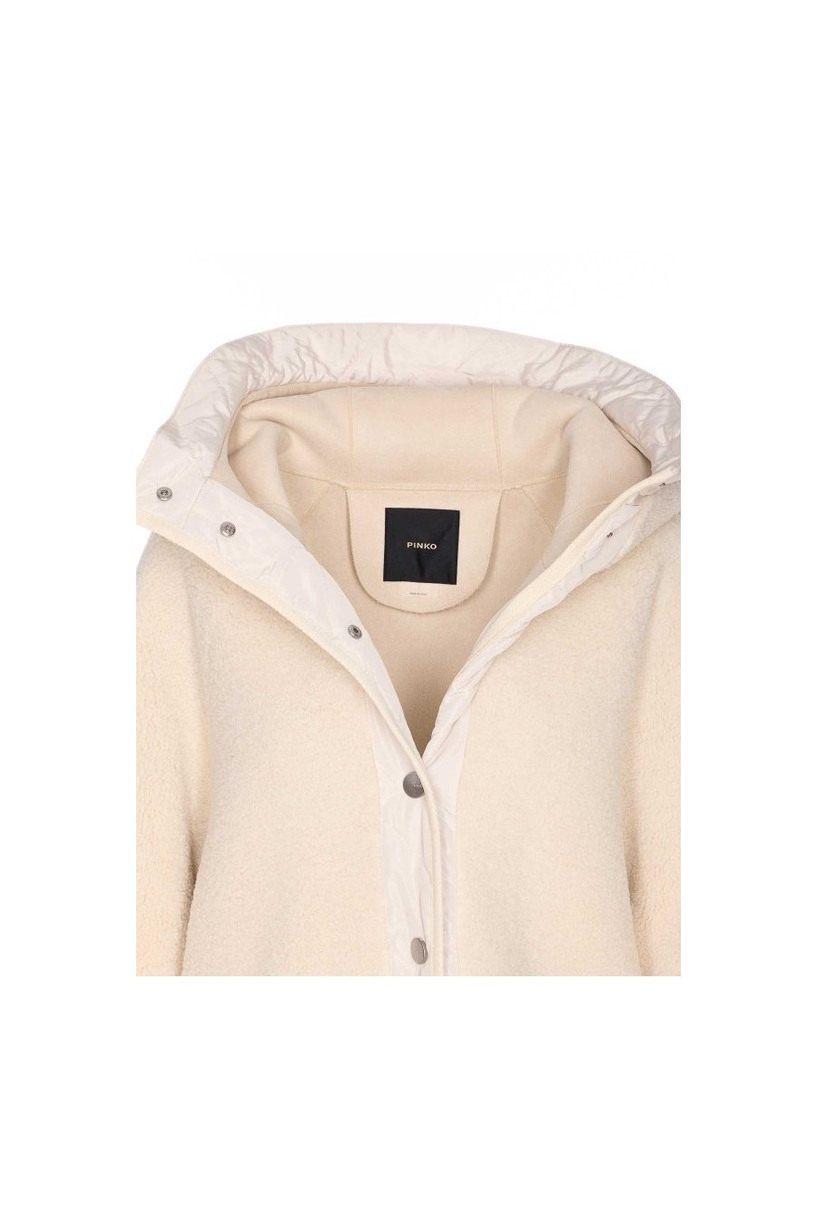 Pinko preppy-style cardigan in soft merino wool, contrasting yarn highlighting the cuffs, yoke, hem, collar and front pockets, tone-on-tone label with PINKO logo lettering on the back of the neck, front closure with metal buttons decorated with stars.