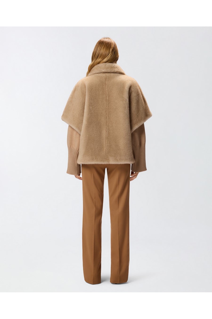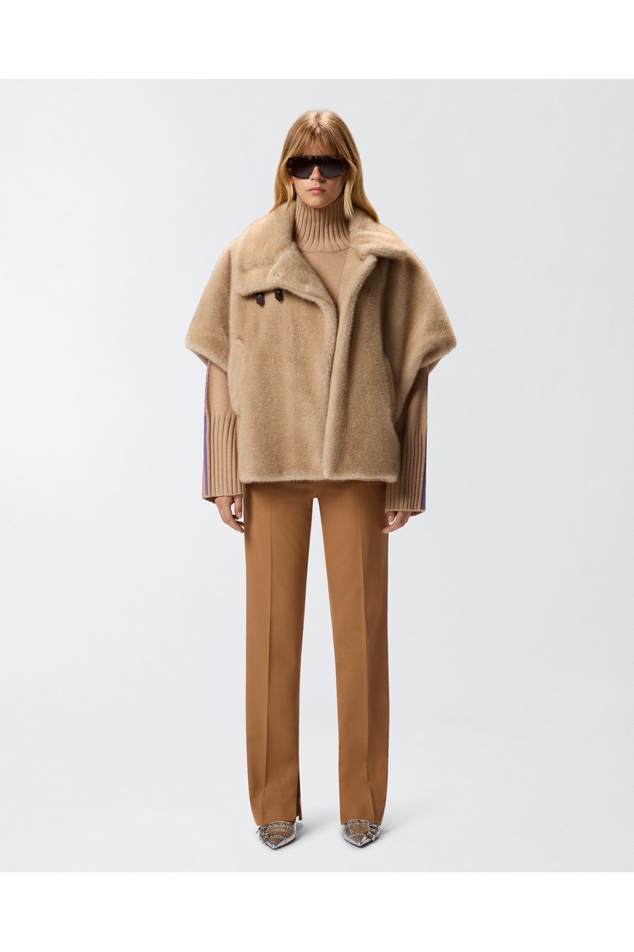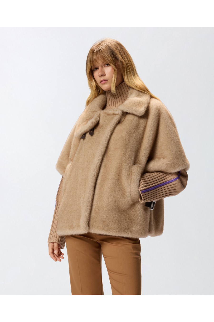 Pinko short cape with short sleeves, welt pockets, wraparound folded collar and off-centre front fastening, made from soft Aspen fabric with a fur effect, lined.