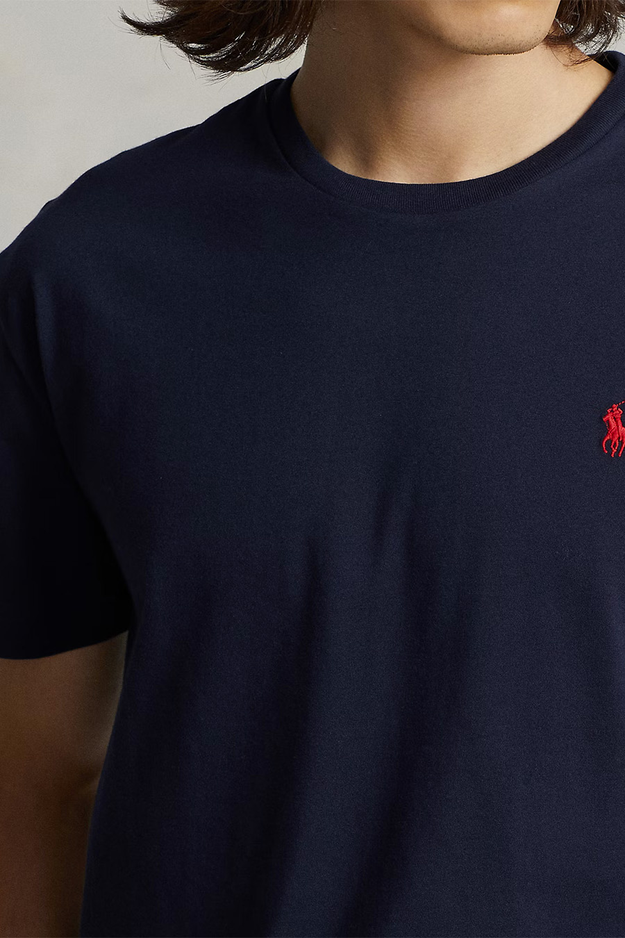 hard blue cotton t-shirt from Polo Ralph Lauren featuring round neck, short sleeves, straight hem, lo in contrast embroidered in front, slim fit
