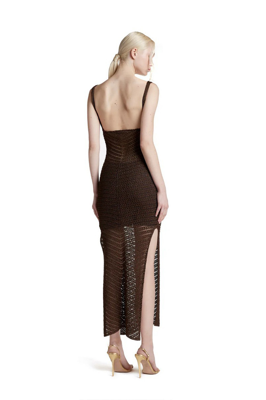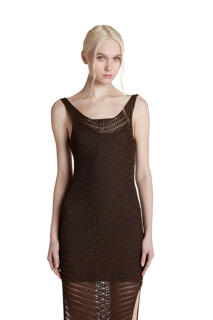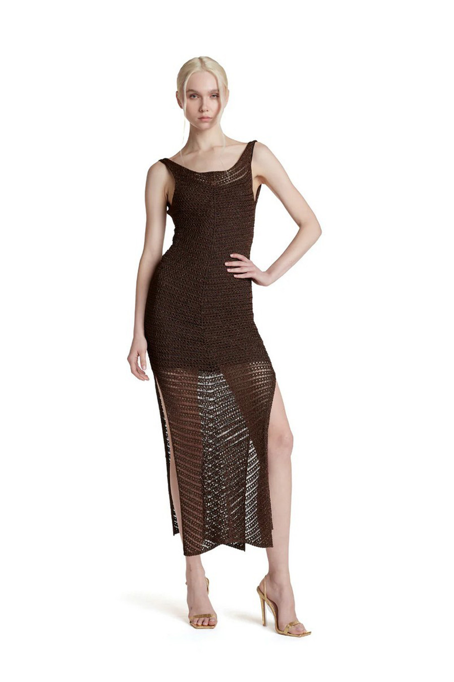 Simona Corsellini midi slip dress with slits, in lurex crochet.