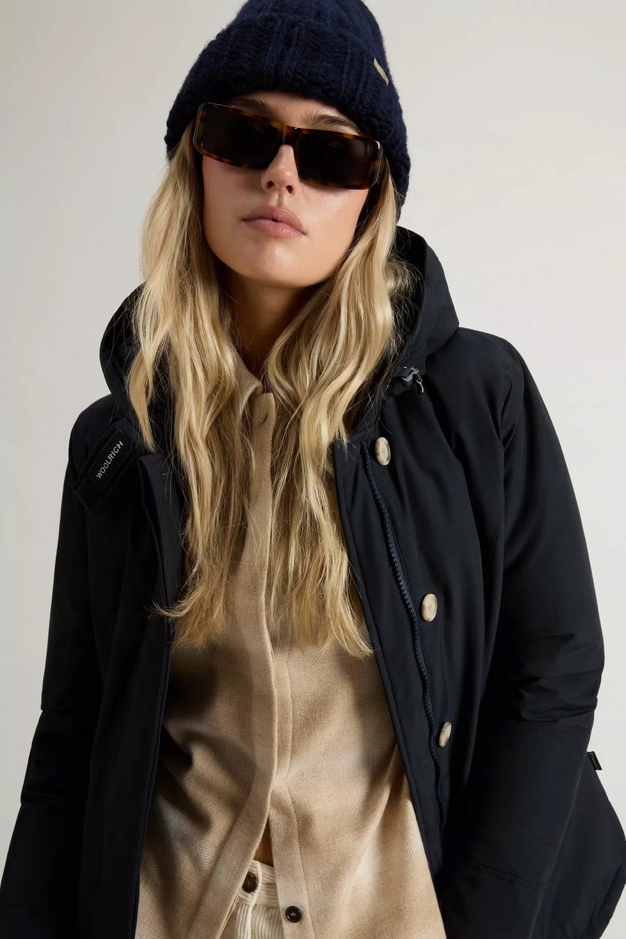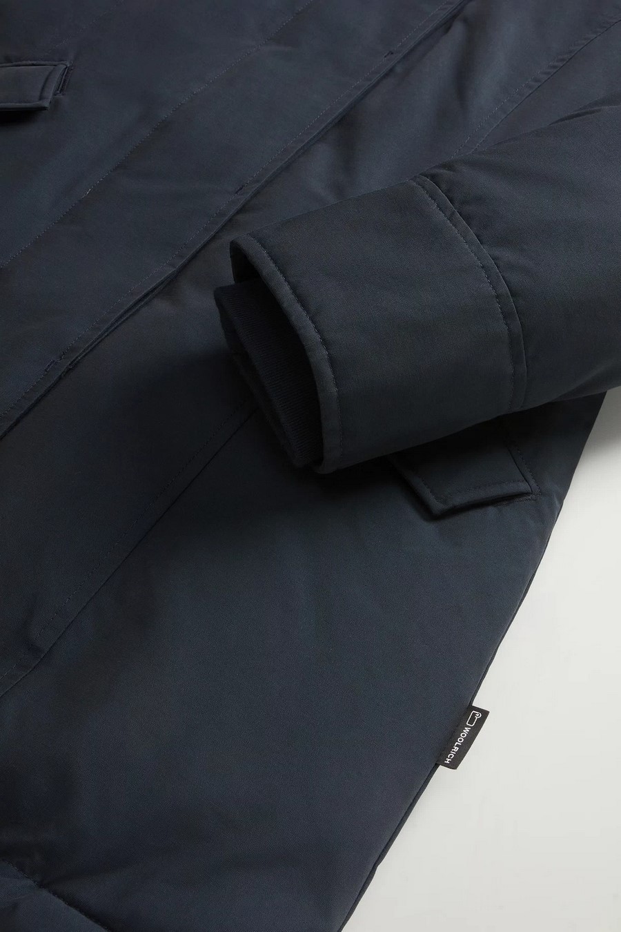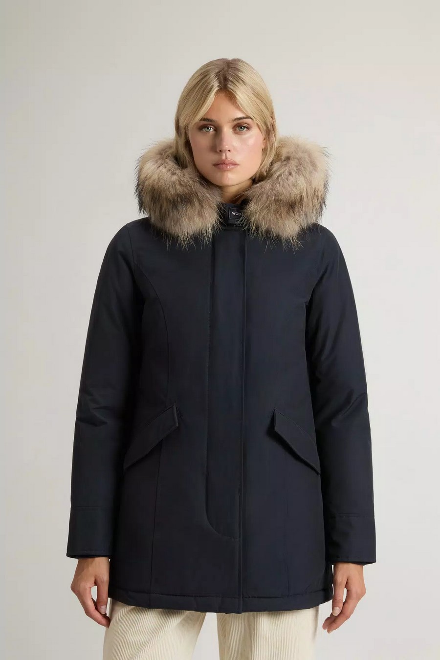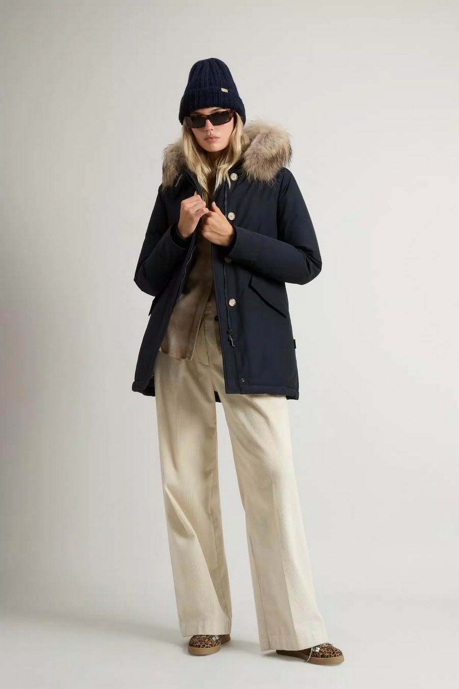 Arctic Parka in Ramar Cloth Woolrich with removable fur, made with the characteristic Ramar Cloth fabric, enriched with a special Teflon finish that guarantees resistance to wind and rain.