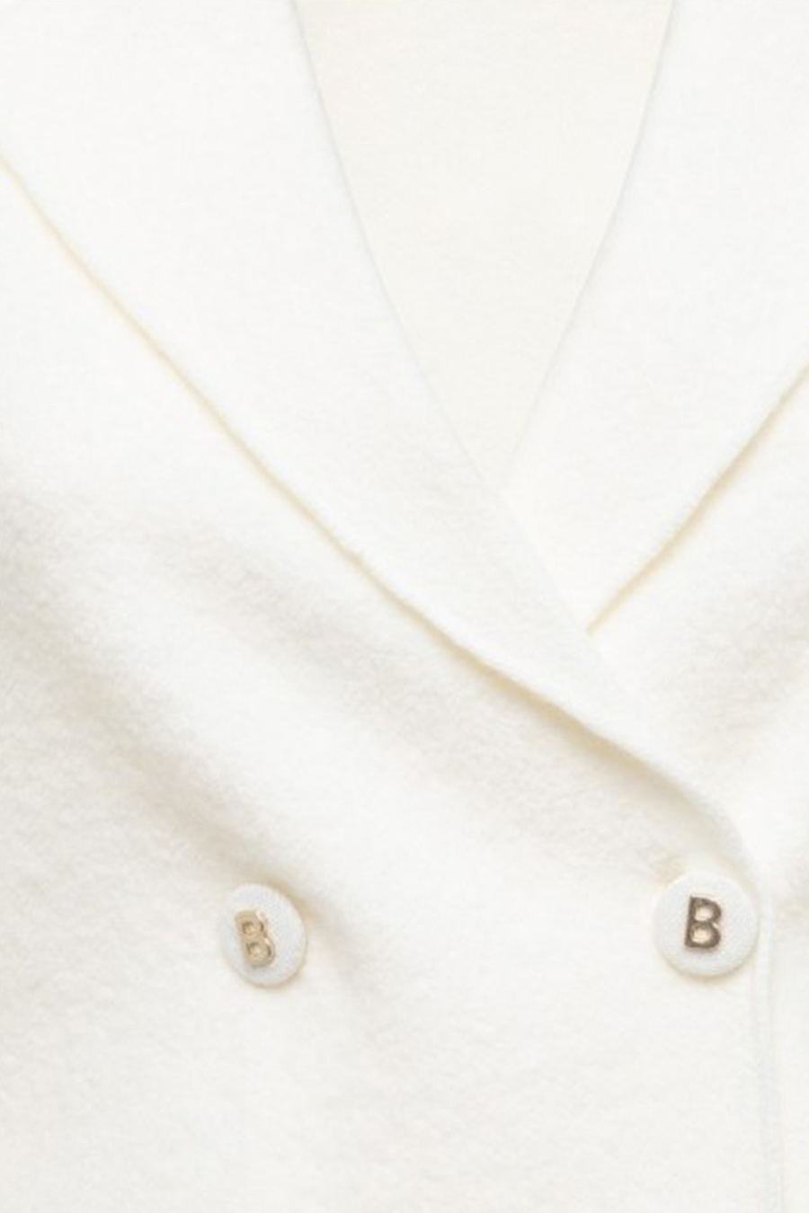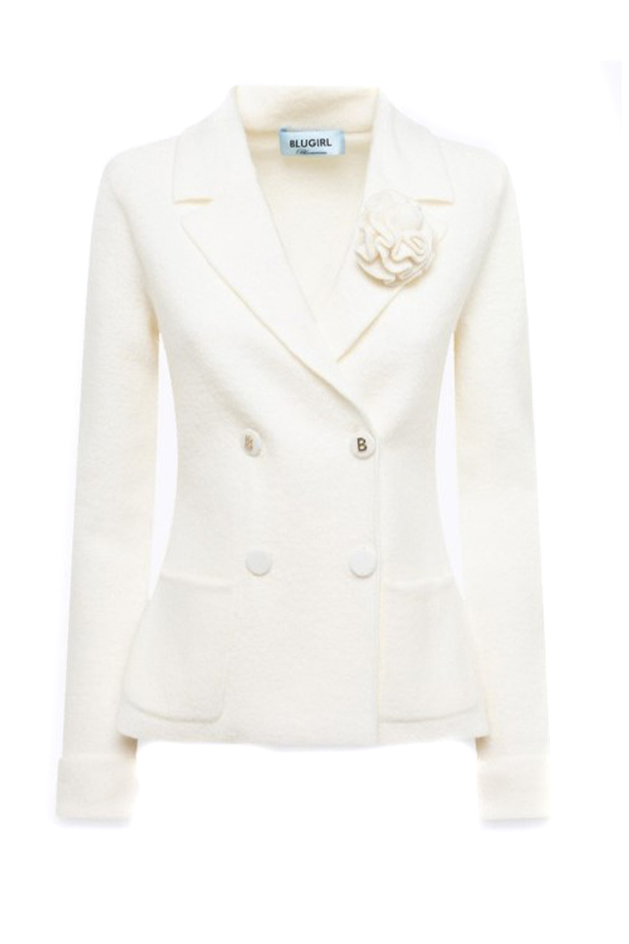 Blugirl jacket in pure wool jacquard sweatshirt knit, soft boiled wool effect, straight cut, closure with covered buttons and logoed first buttons, patch pockets, removable rose brooch on the buttonhole.