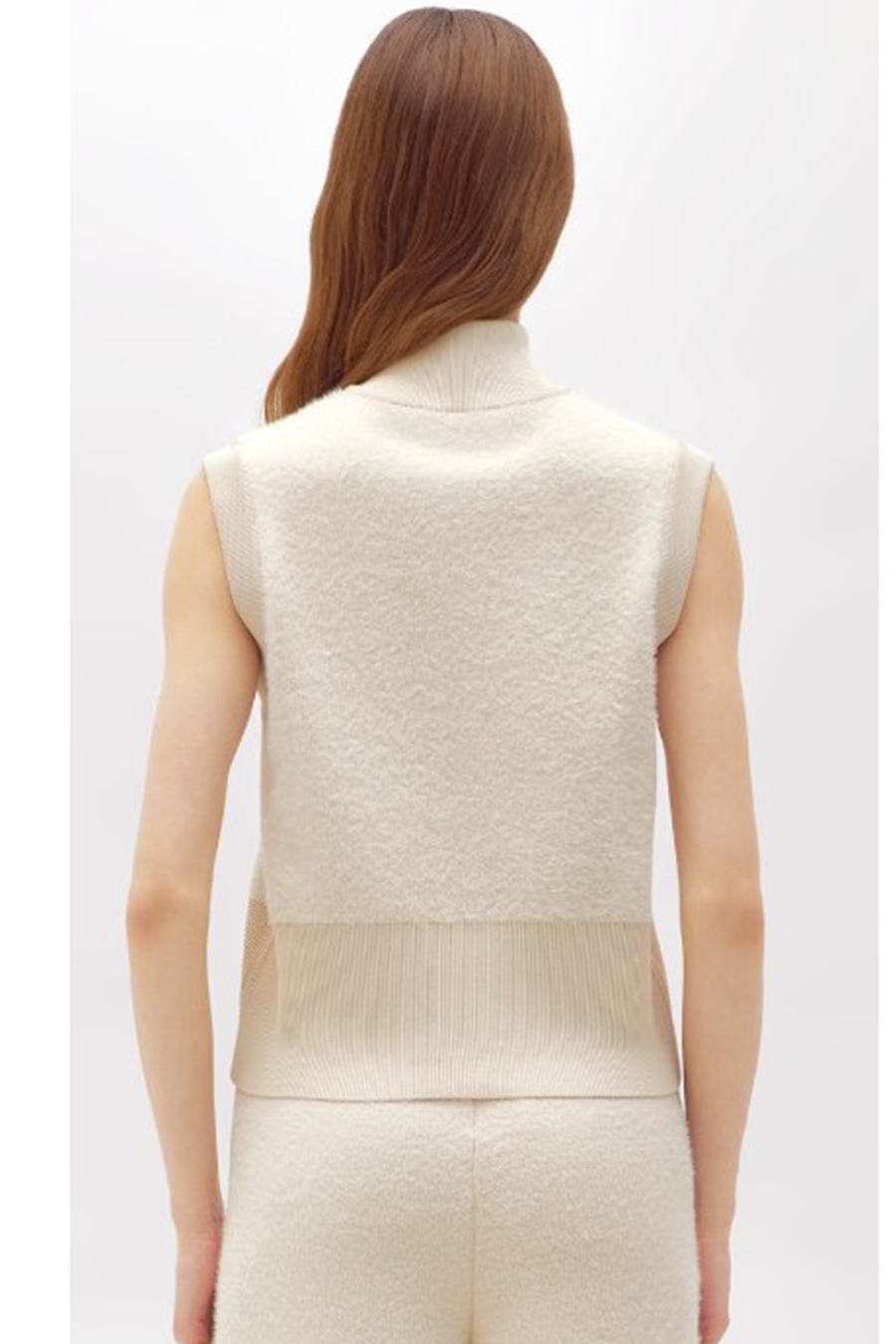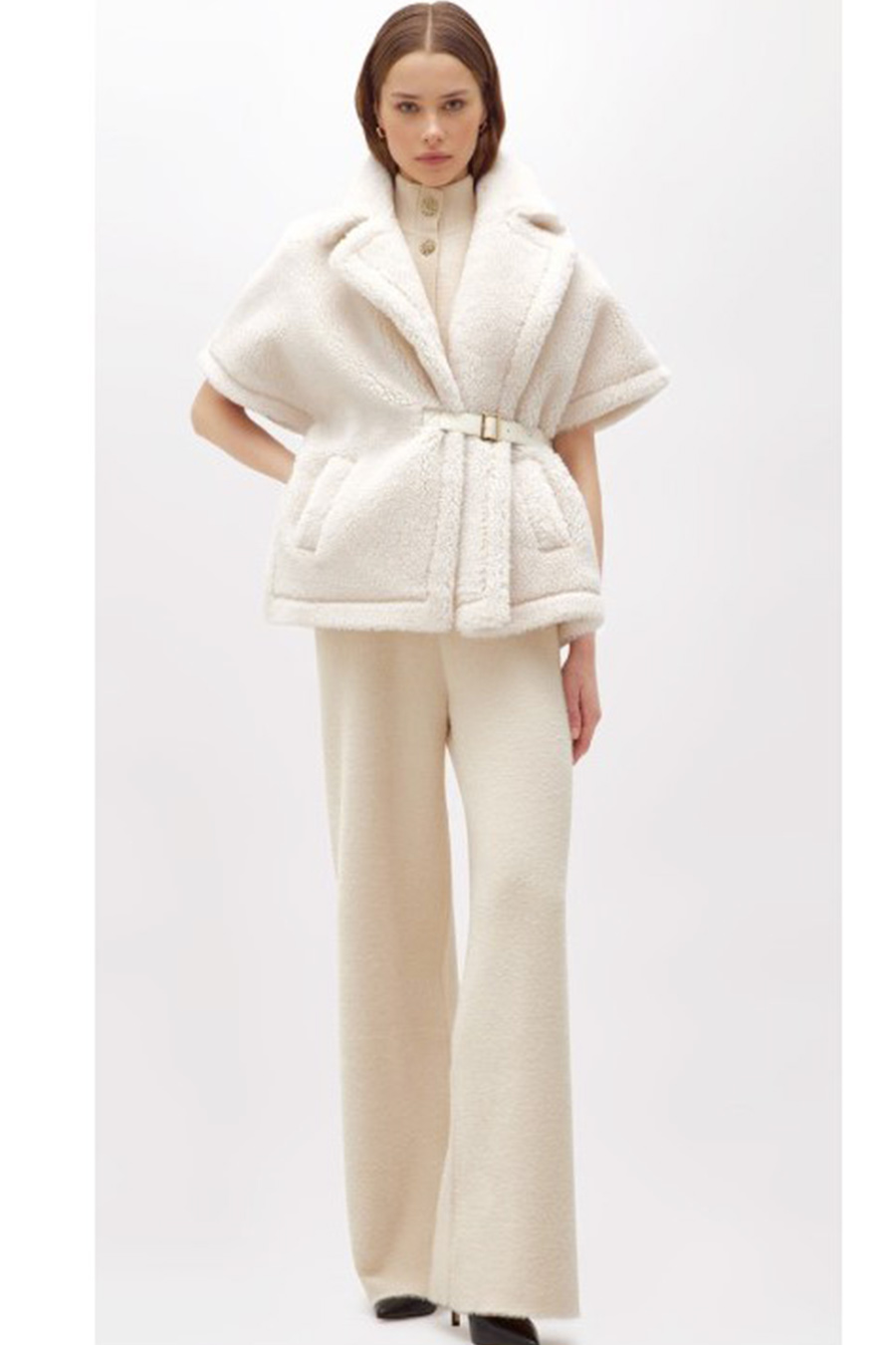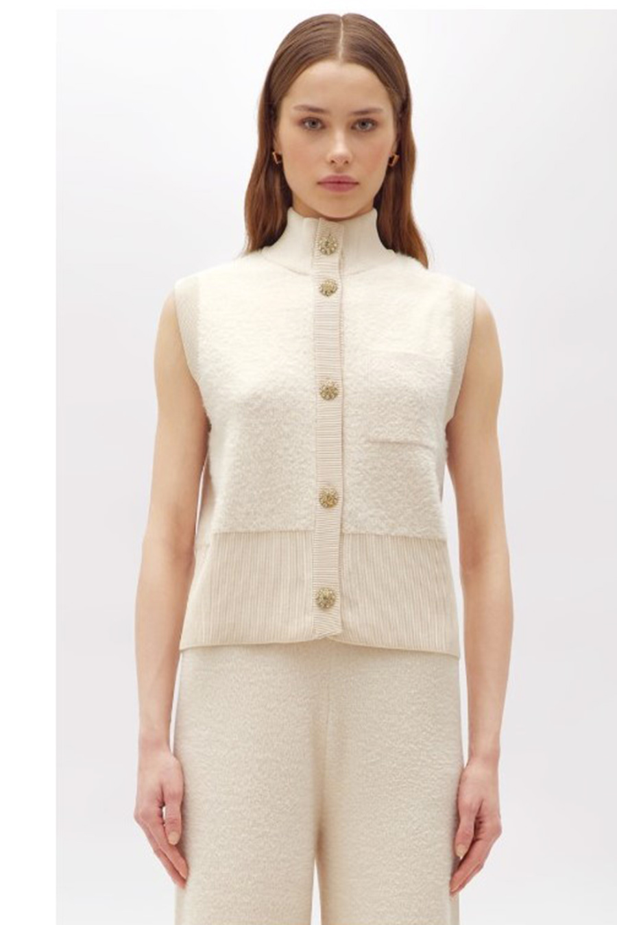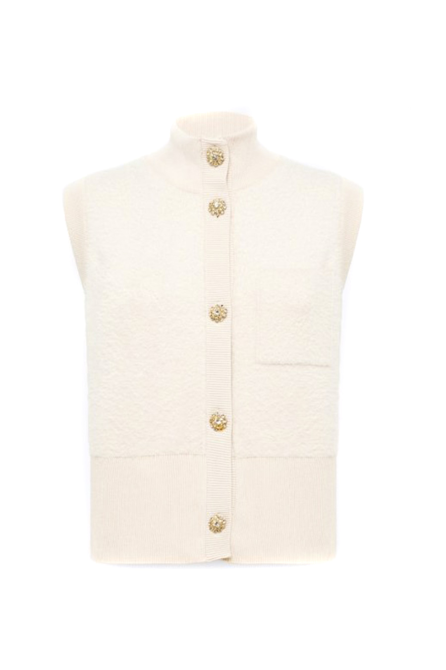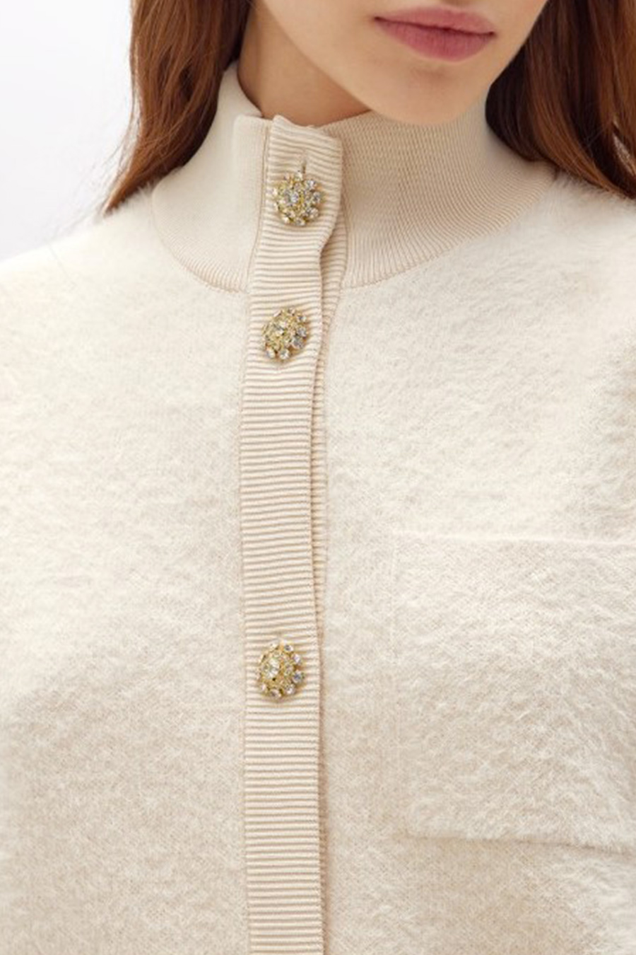 Blugirl cardigan in faux fur yarn, high collar, jewelled button fastening, ribbed hem, patch pocket, viscose trim.