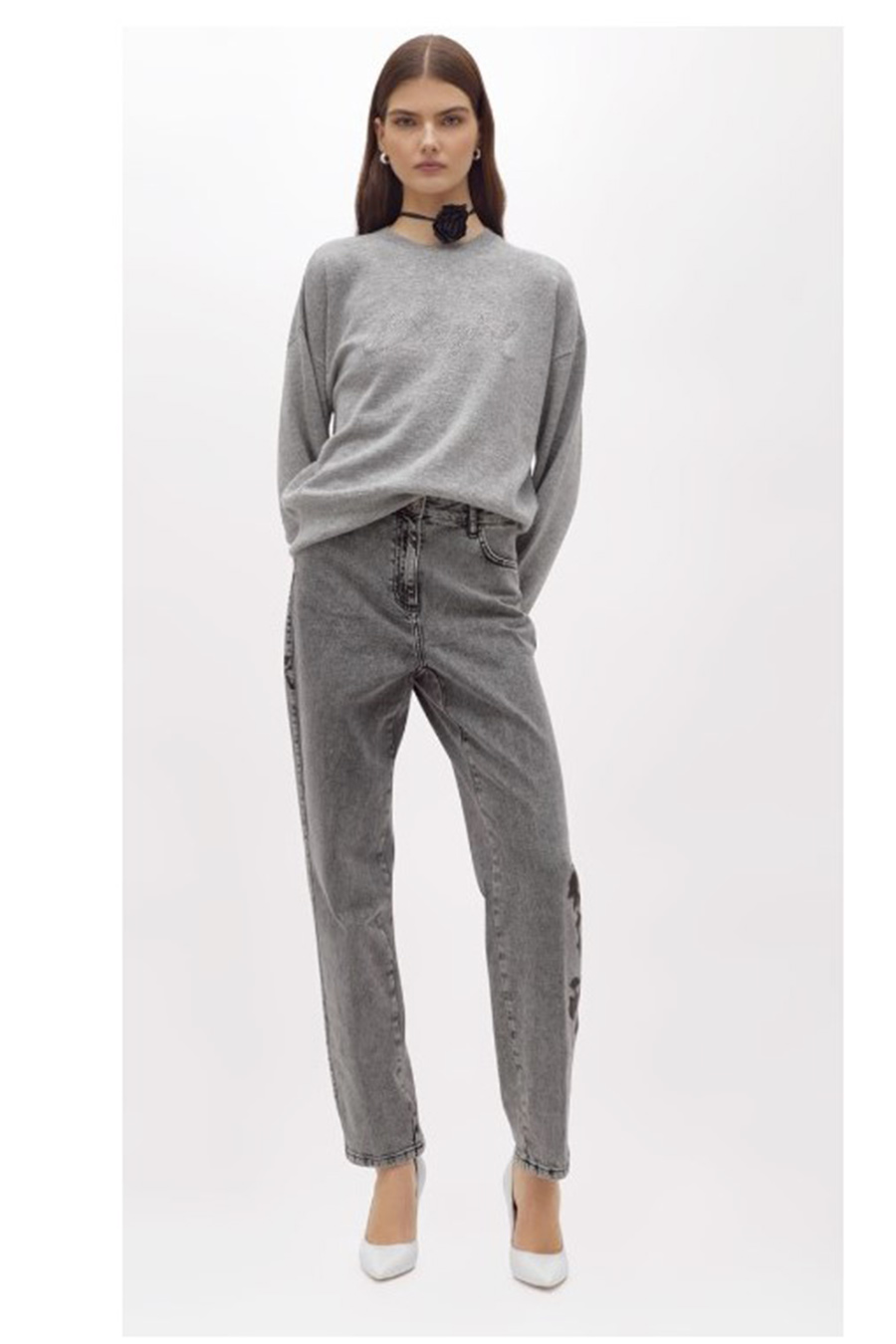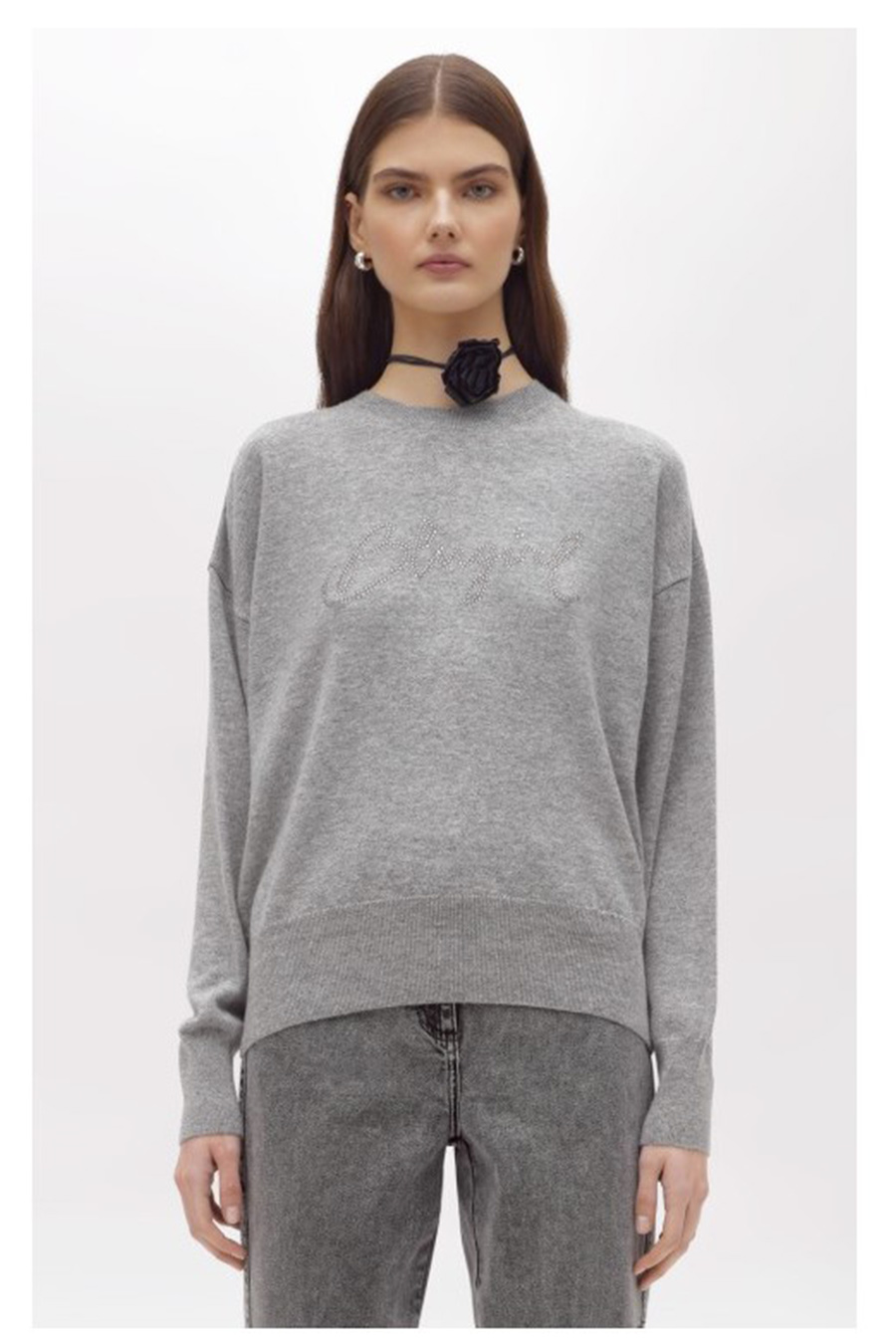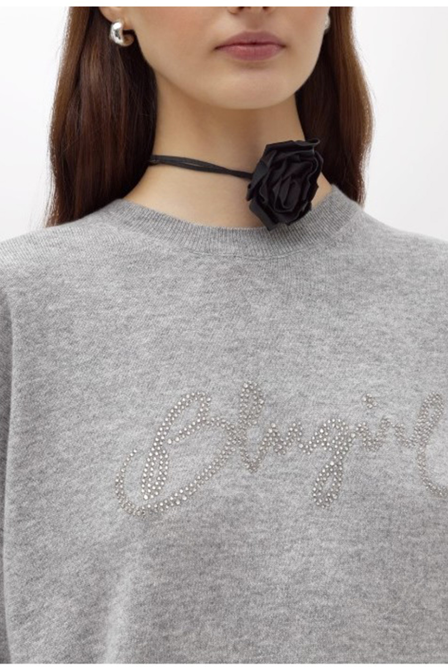 Blugirl wool and cashmere jumper with round neck, long sleeves with dropped shoulders, ribbed trim and lettering logo with heat-activated crystals.