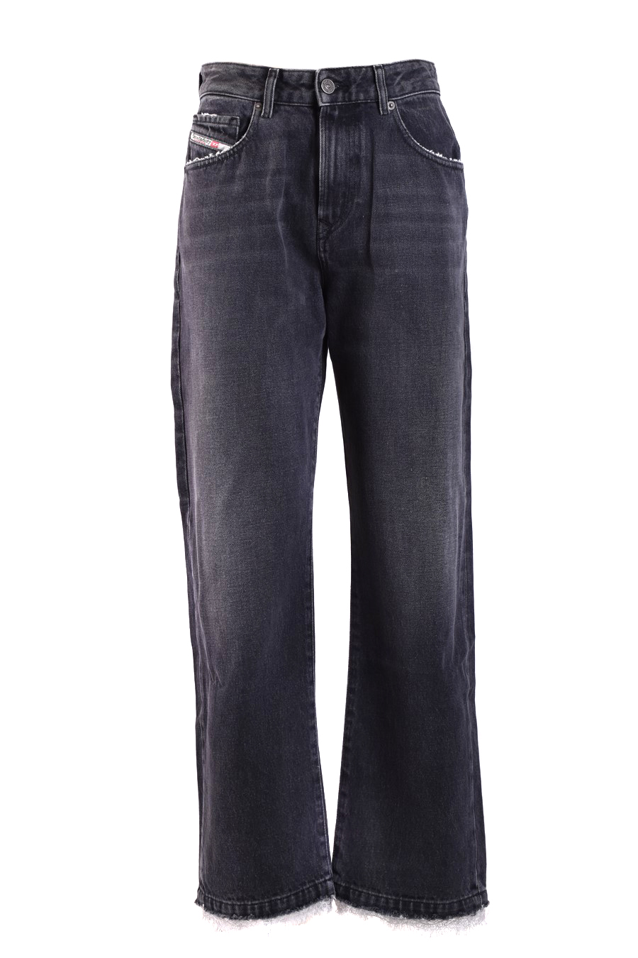 denim jeans from Diesel featuring faded effect, logo patch to the side, straight leg, high-waisted, concealed fly and button fastening, belt loops, classic five pockets