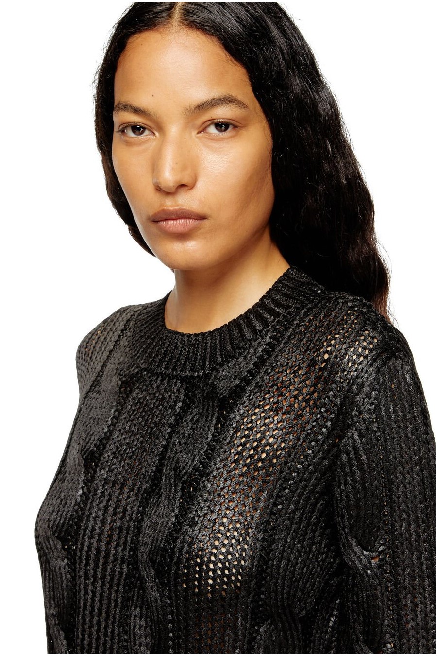 This Diesel m-miccha sweater shines with an intense shine, knitted with classic cables on the front and sleeves, then heat-pressed for a contemporary finish.