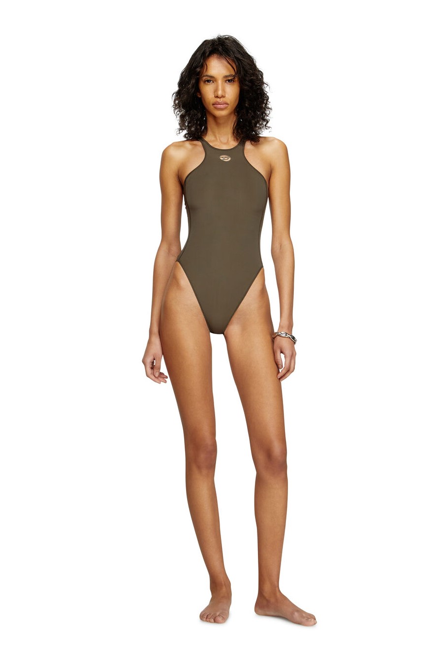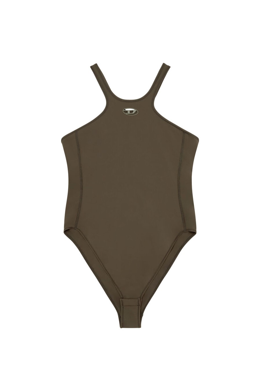 The Diesel Christie-Ult bodysuit is made from soft stretch fabric that hugs the body without compressing. Crafted from recycled nylon fibers, it features a sporty neckline and an Oval D detail at the center of the chest.
