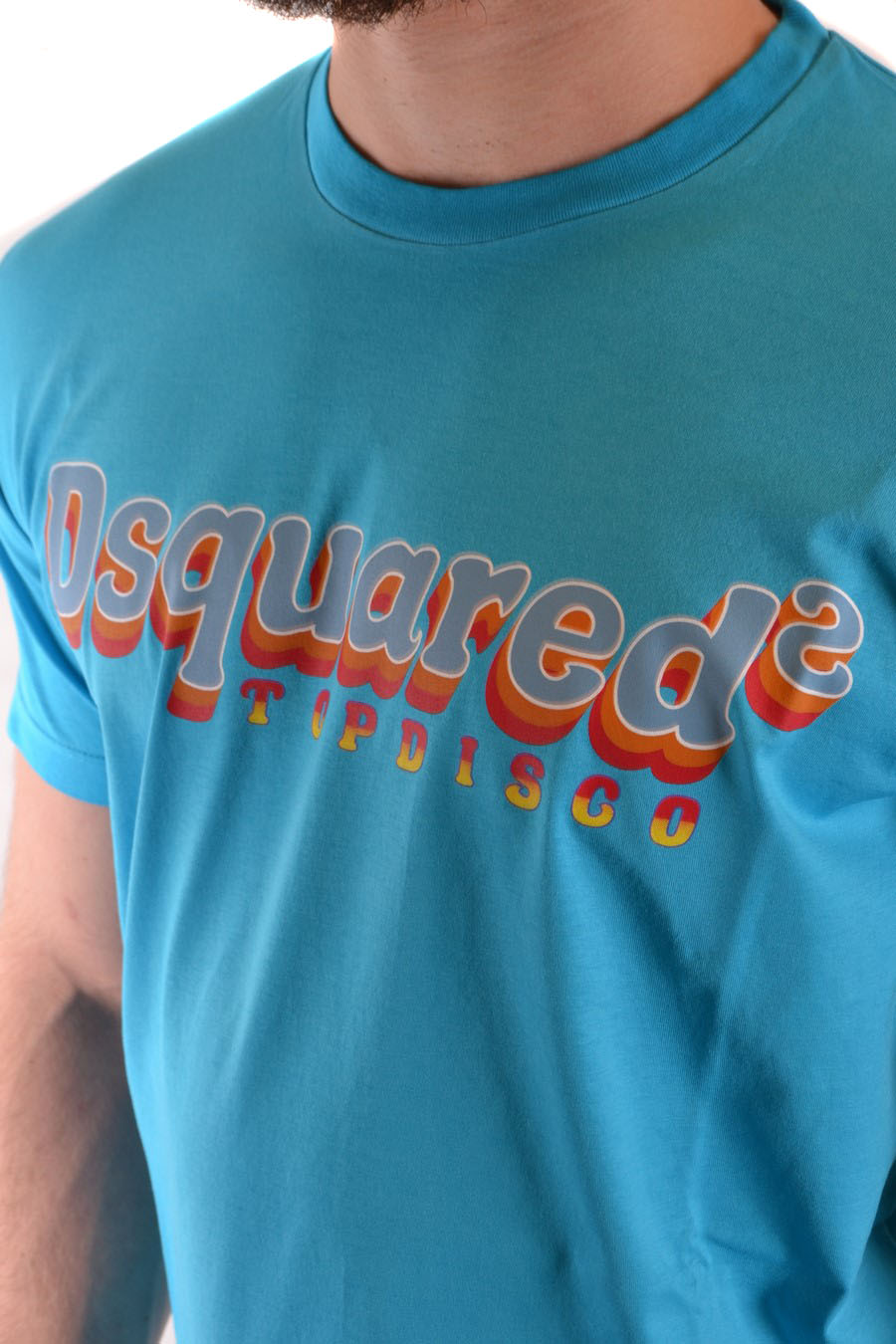 sky cotton t-shirt from Dsquared2 featuring round neck, short sleeves, logo print in front, straight hem, slim fit