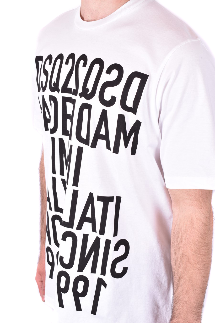 white cotton t-shirt from Dsquared2 featuring round neck, short sleeves, logo print to the front, straight hem, slouch fit
