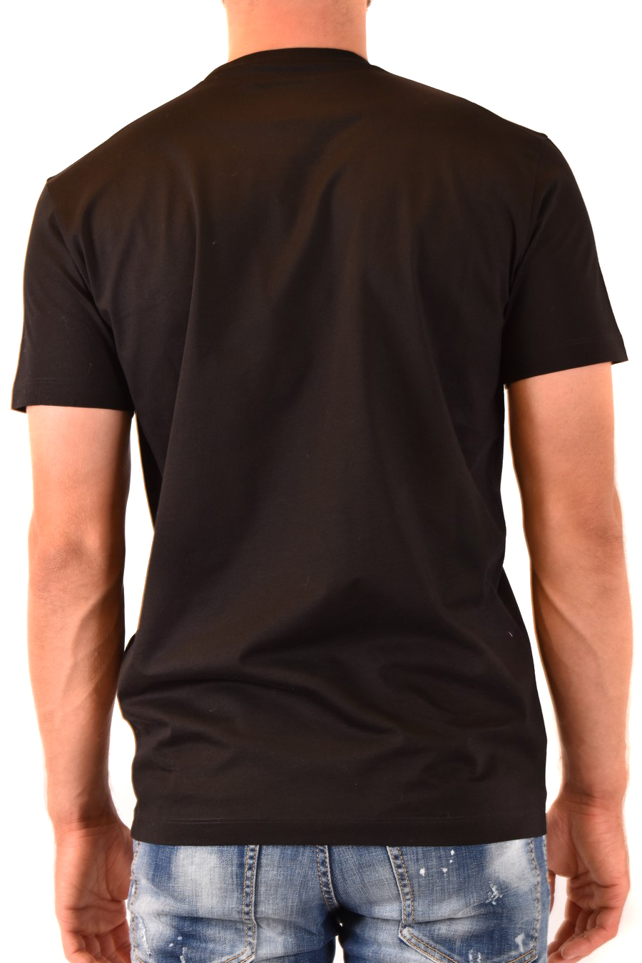 black cotton t-shirt from Dsquared2 featuring round neck, short sleeve, multicolor logo print on the front