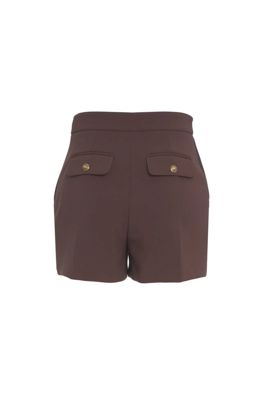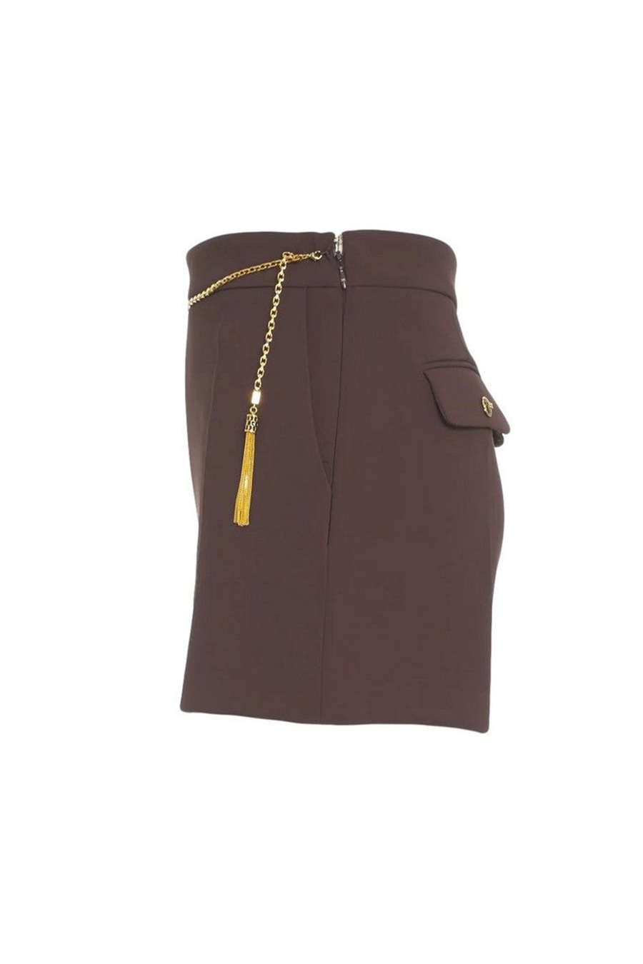 Lightweight crêpe shorts with Elisabetta Franchi jewelled chain, pockets, and waist embellished with a chain belt featuring the logo and a pendant tassel.