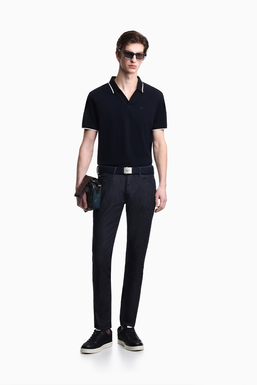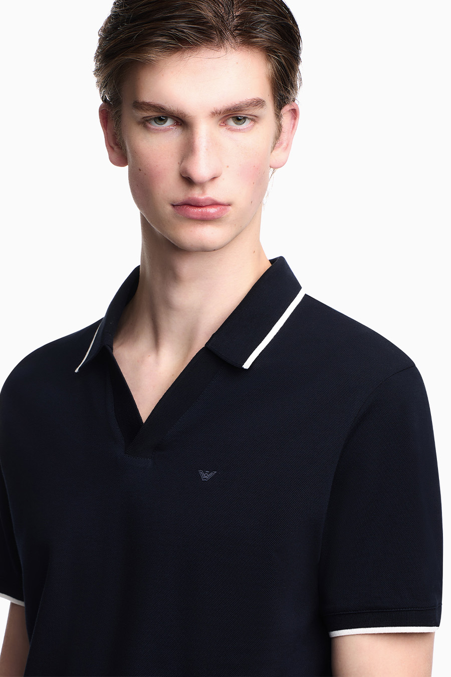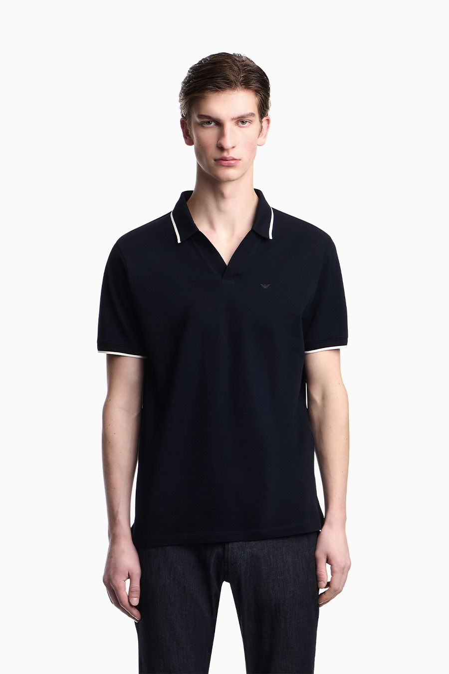 Emporio Armani piqué polo shirt with V-neck.