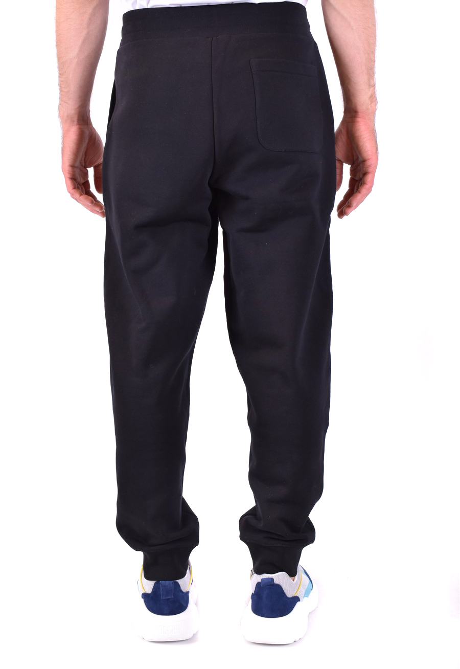 black cotton trousers from Moschino featuring hight waist, logo patch to the front, side slit pockets, elasticated waistband, straight leg, elasticated cuffs