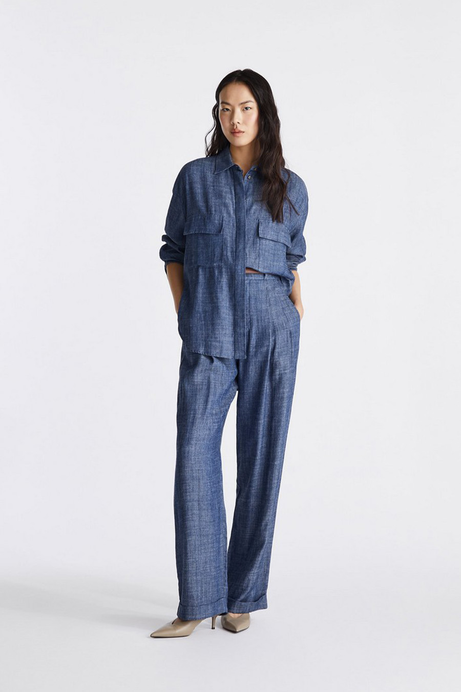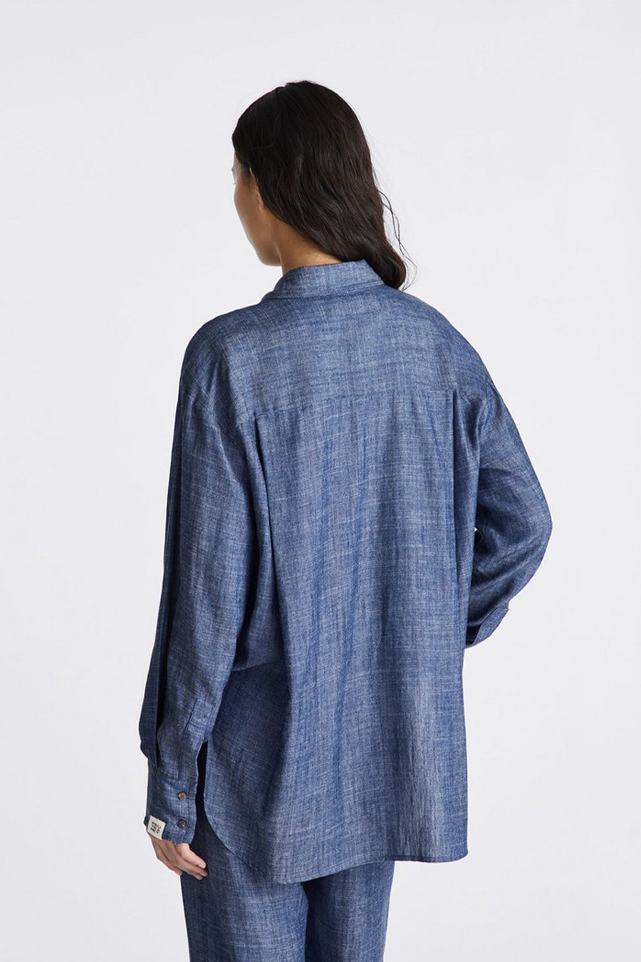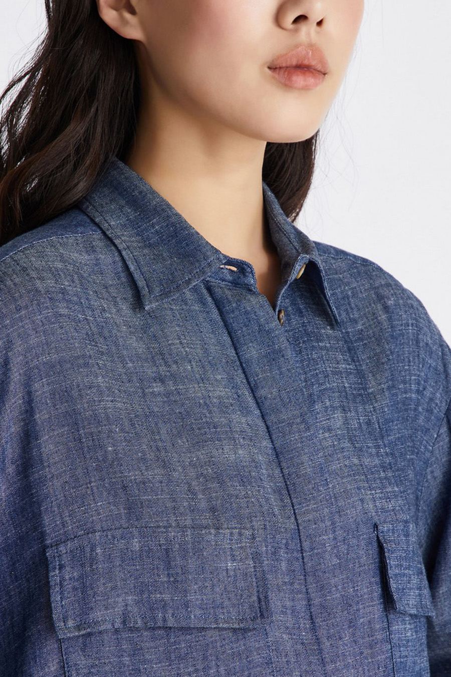 Peuterey oversized shirt in lyocell and linen denim, featuring two chest pockets with flaps, a classic collar and traditional cuffs.