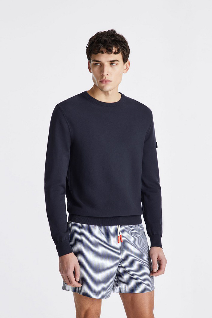Peuterey cotton jersey jumper with a regular fit, featuring a crew neck and long sleeves, with the Peuterey logo on the left sleeve, fastened with two small buttons.