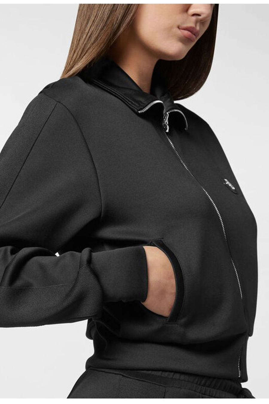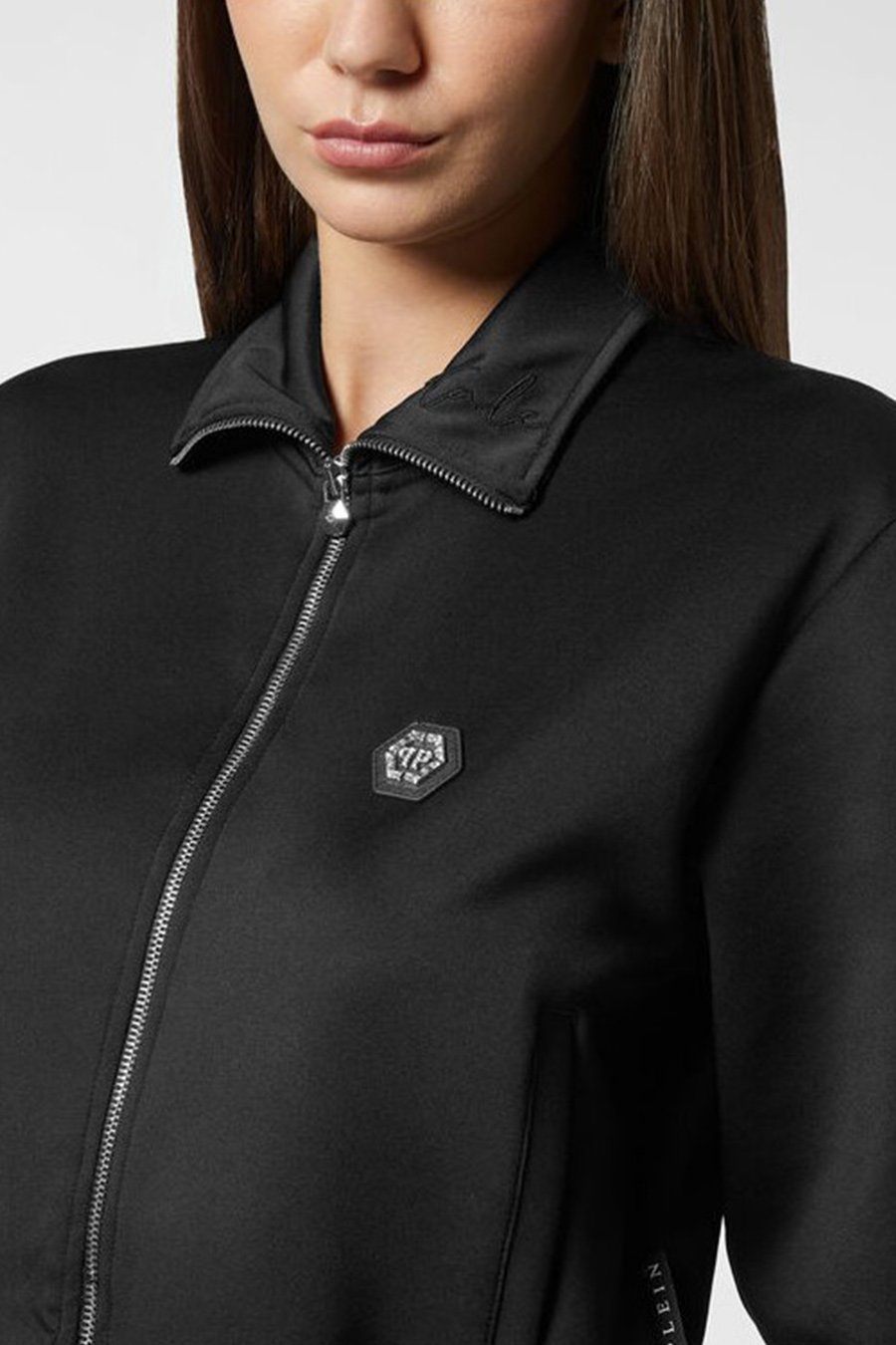Philipp Plein chenille zip-up jacket made from a special fibre and embellished with original details such as embroidery on the collar, logo patch, zip fastening, two welt pockets, ribbed cuffs and hem.