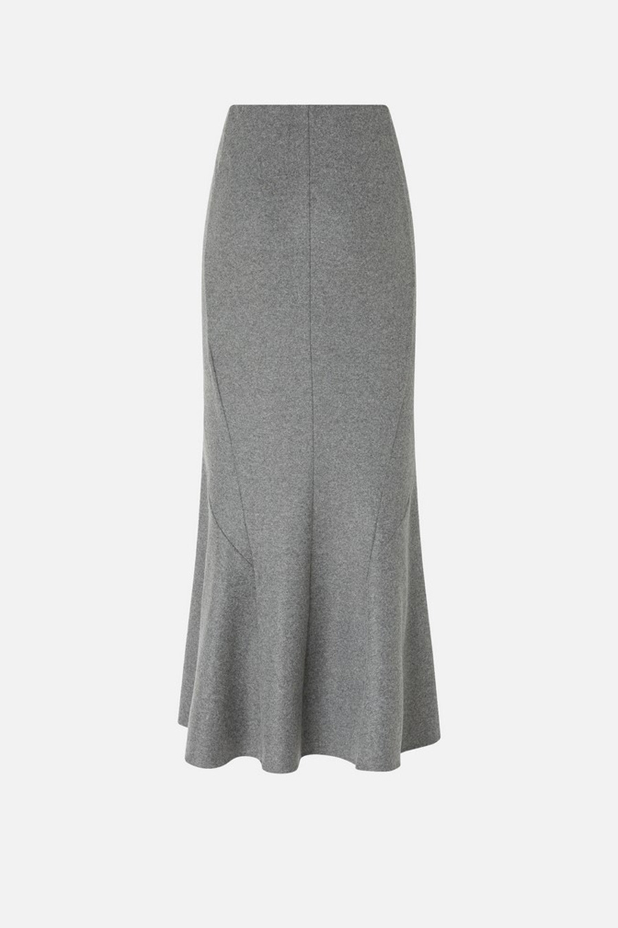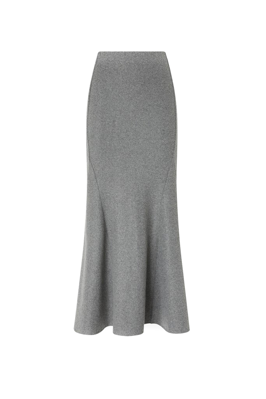 Long skirt with flared hem by Pinko, fitted and made of yarn-dyed wool blend jersey flannel.