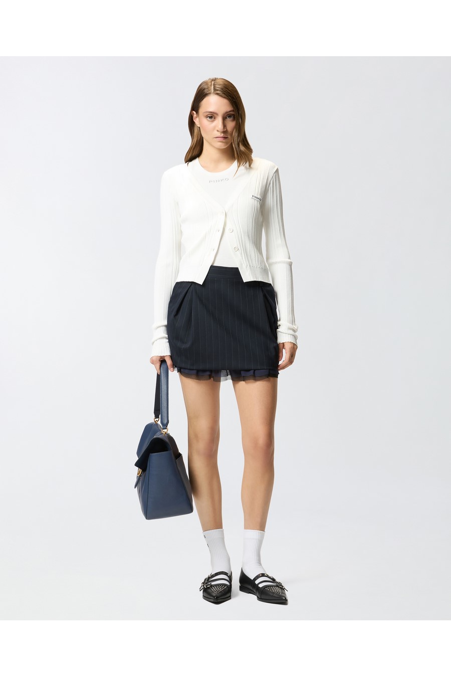Pinko fringed pleated mini skirt with a balloon silhouette, emphasised by soft pleats.