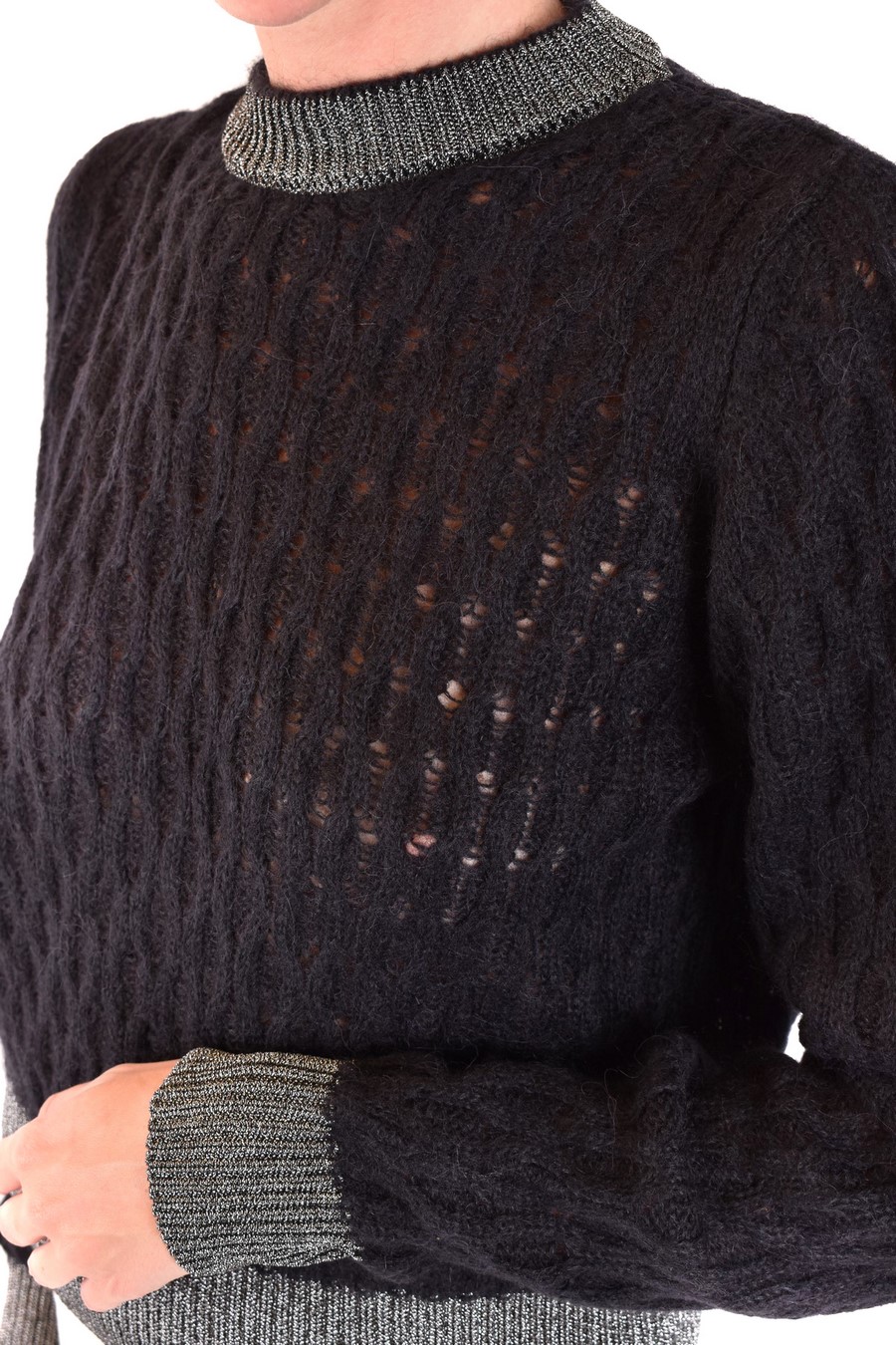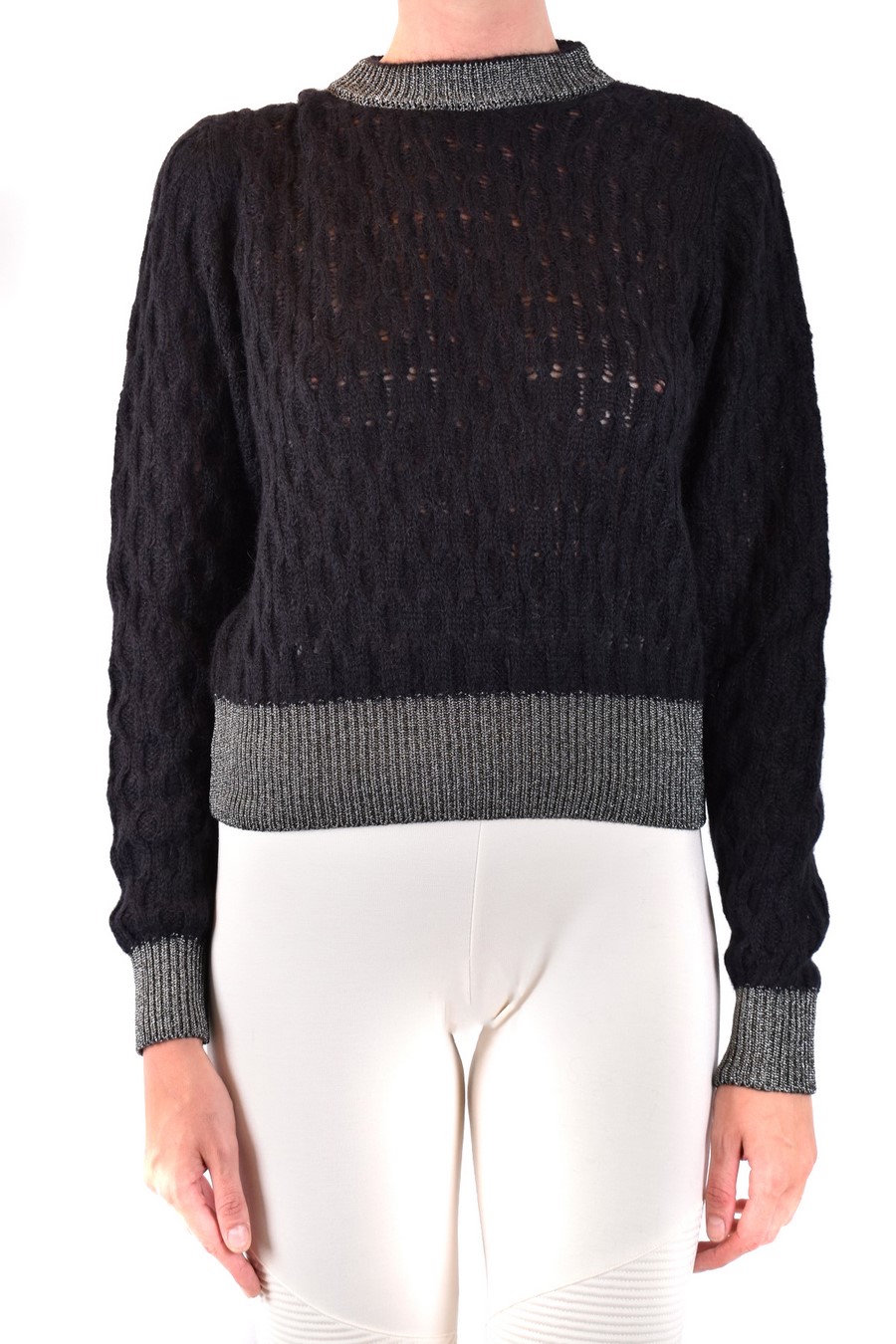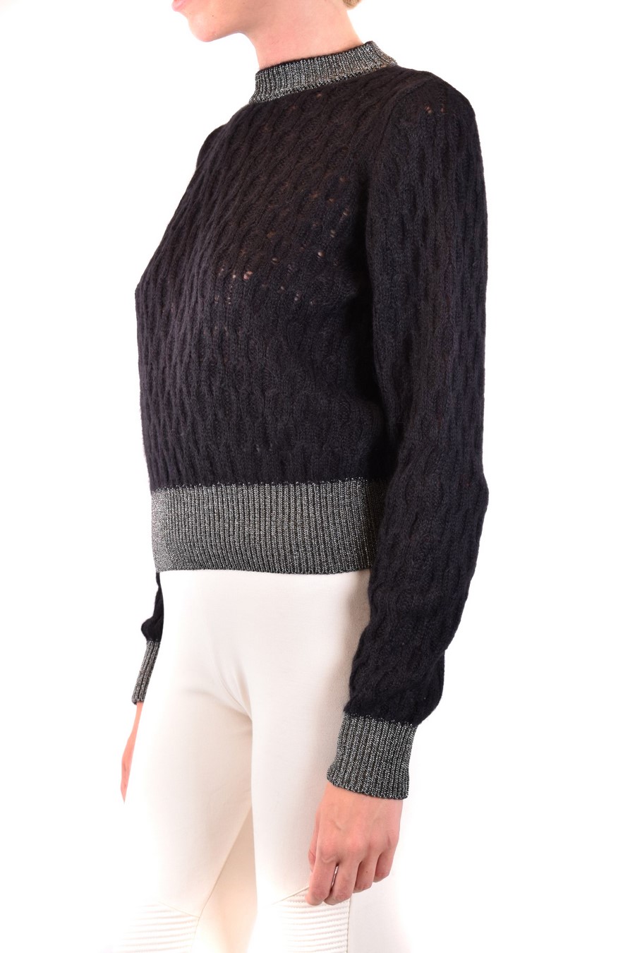 black sweater from Pinko featuring round neck, long sleeves, lurex collar and cuffs