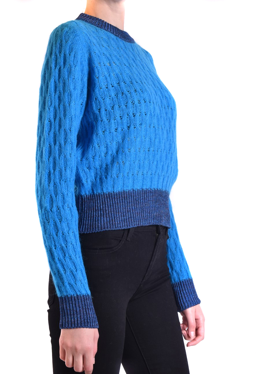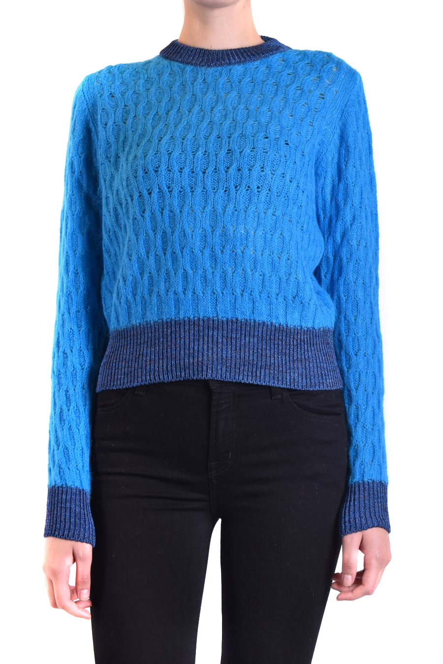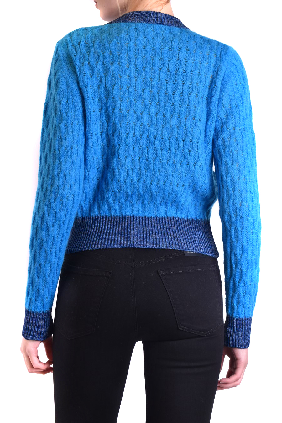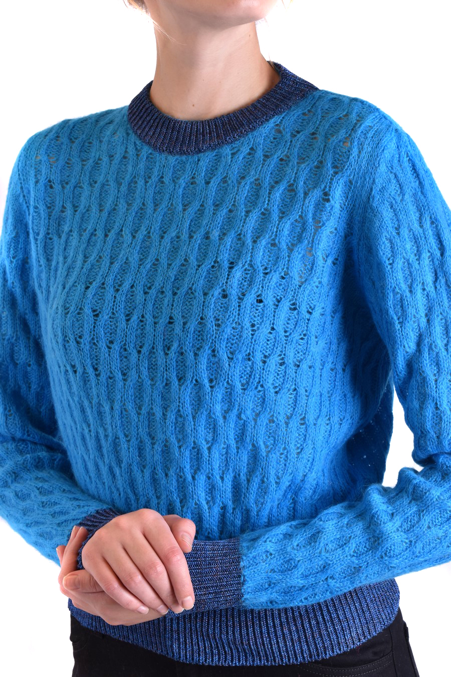 royal blue sweater from Pinko featuring round neck, long sleeves, lurex collar and cuffs