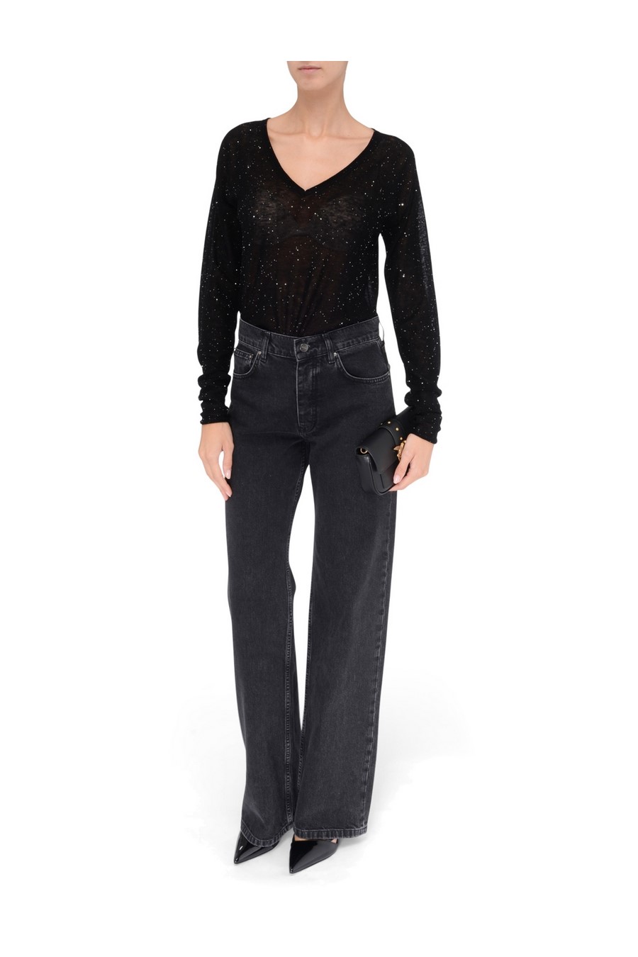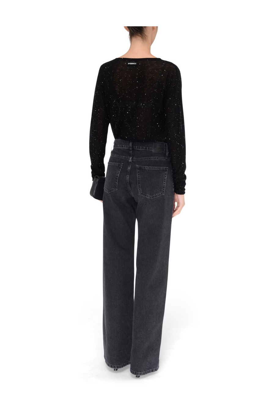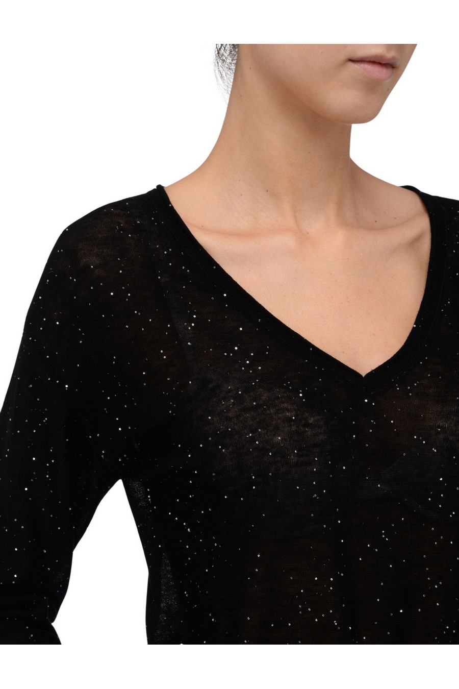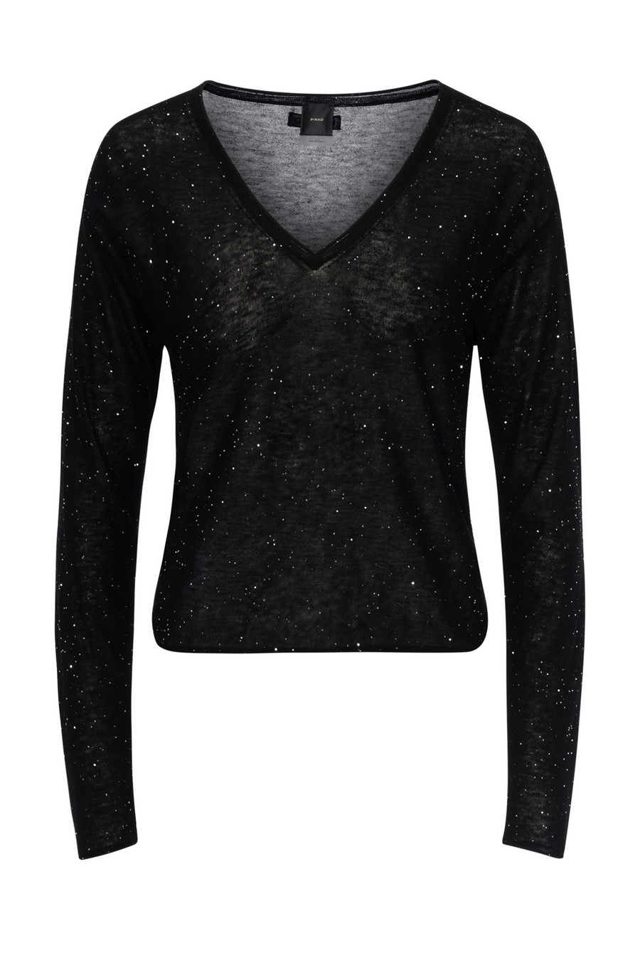 Pinko V-neck jumper made from semi-transparent wool blend fabric, embellished with micro sequins woven into the yarn, with PINKO logo lettering label on the back.Pinko V-neck jumper in semi-transparent wool blend: a light and soft yarn, embellished with micro sequins woven into the thread.