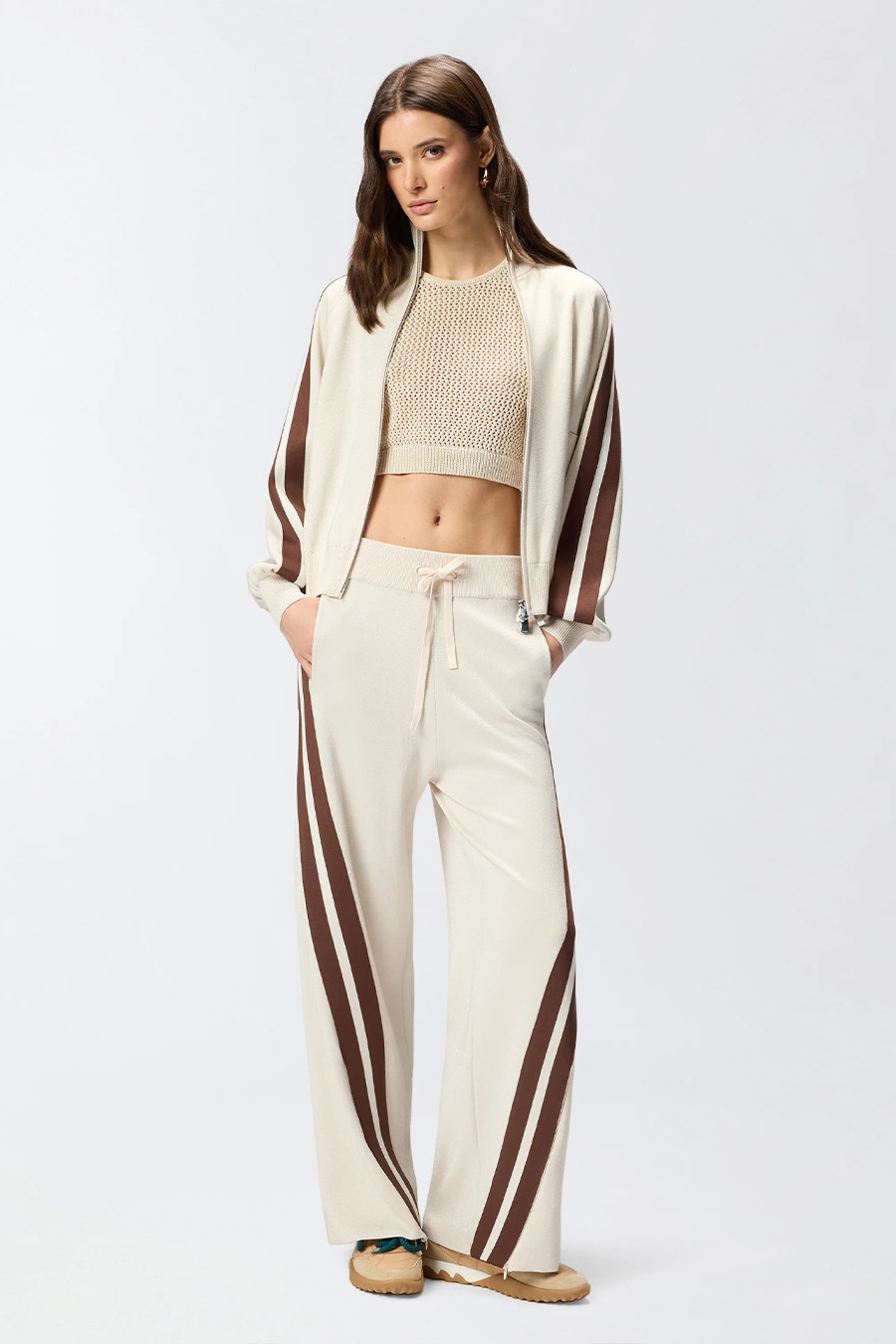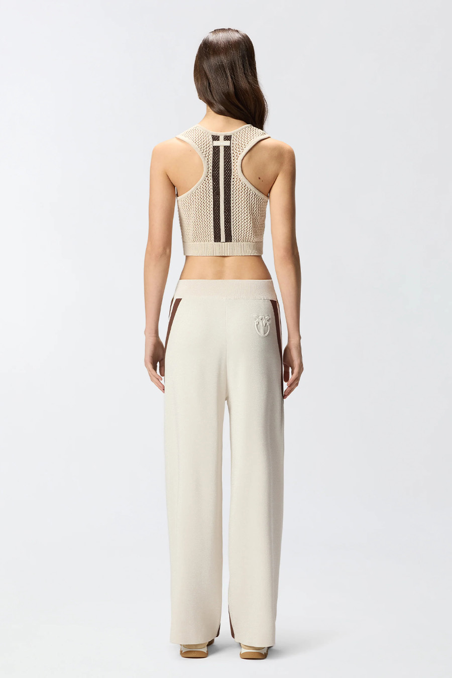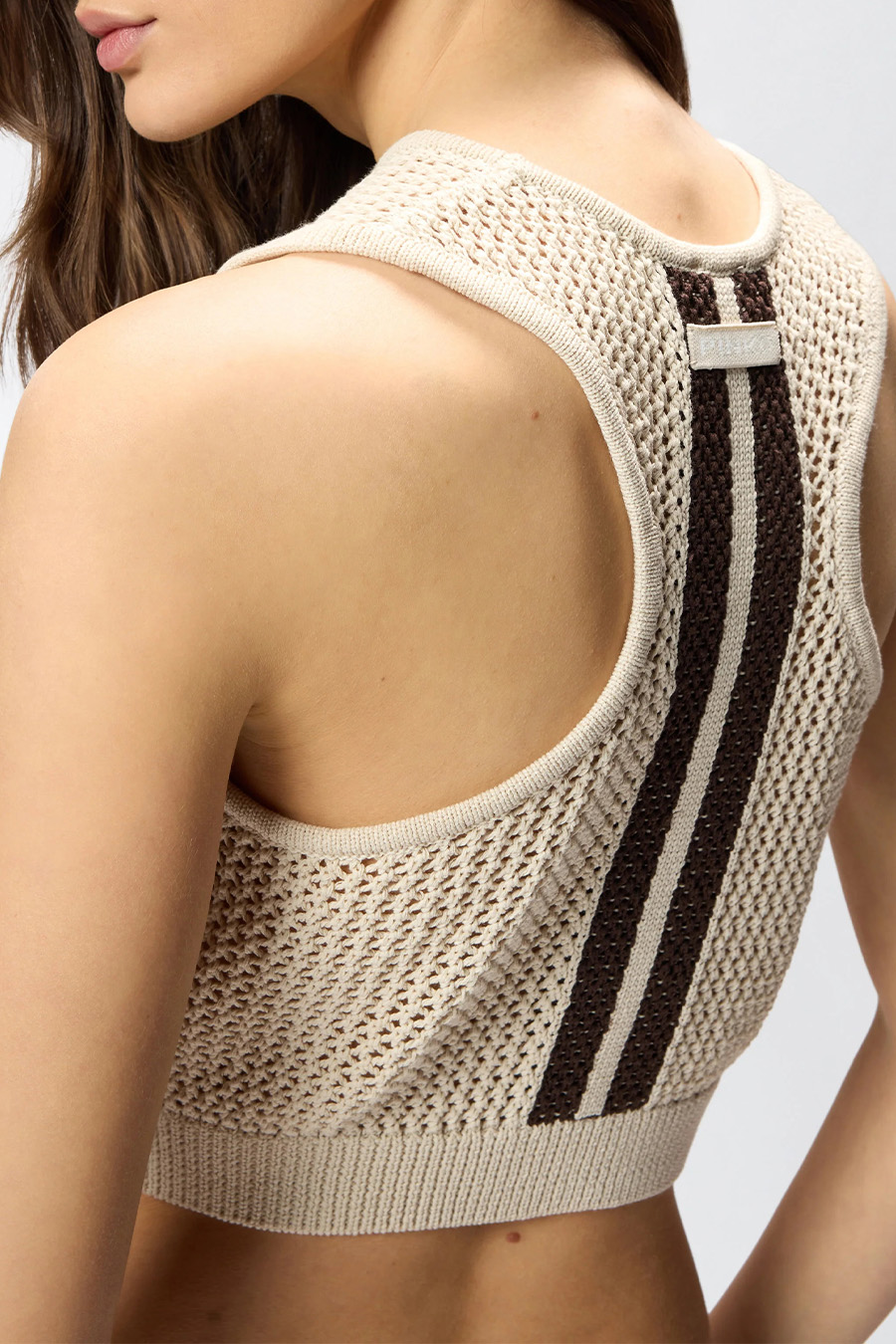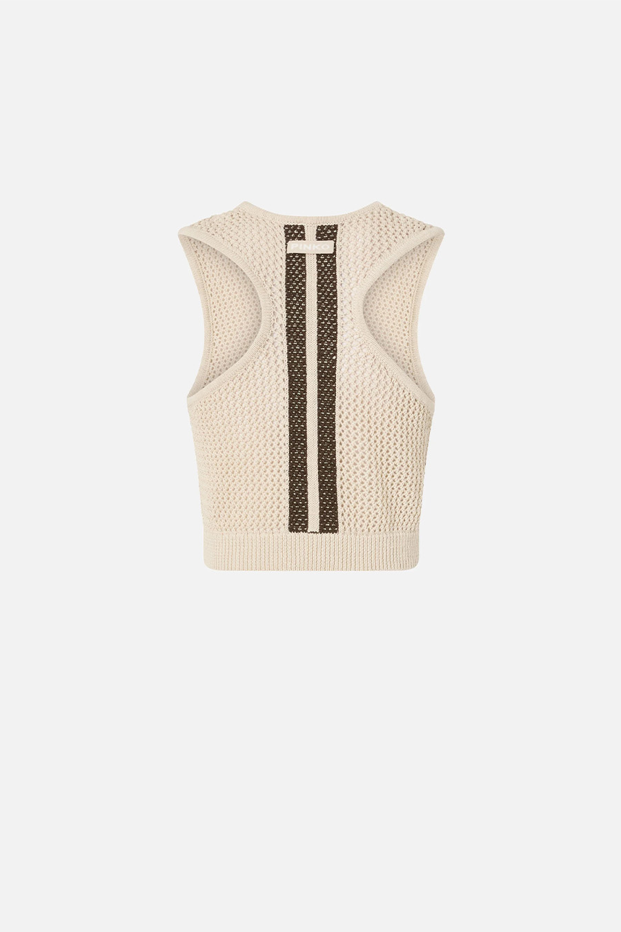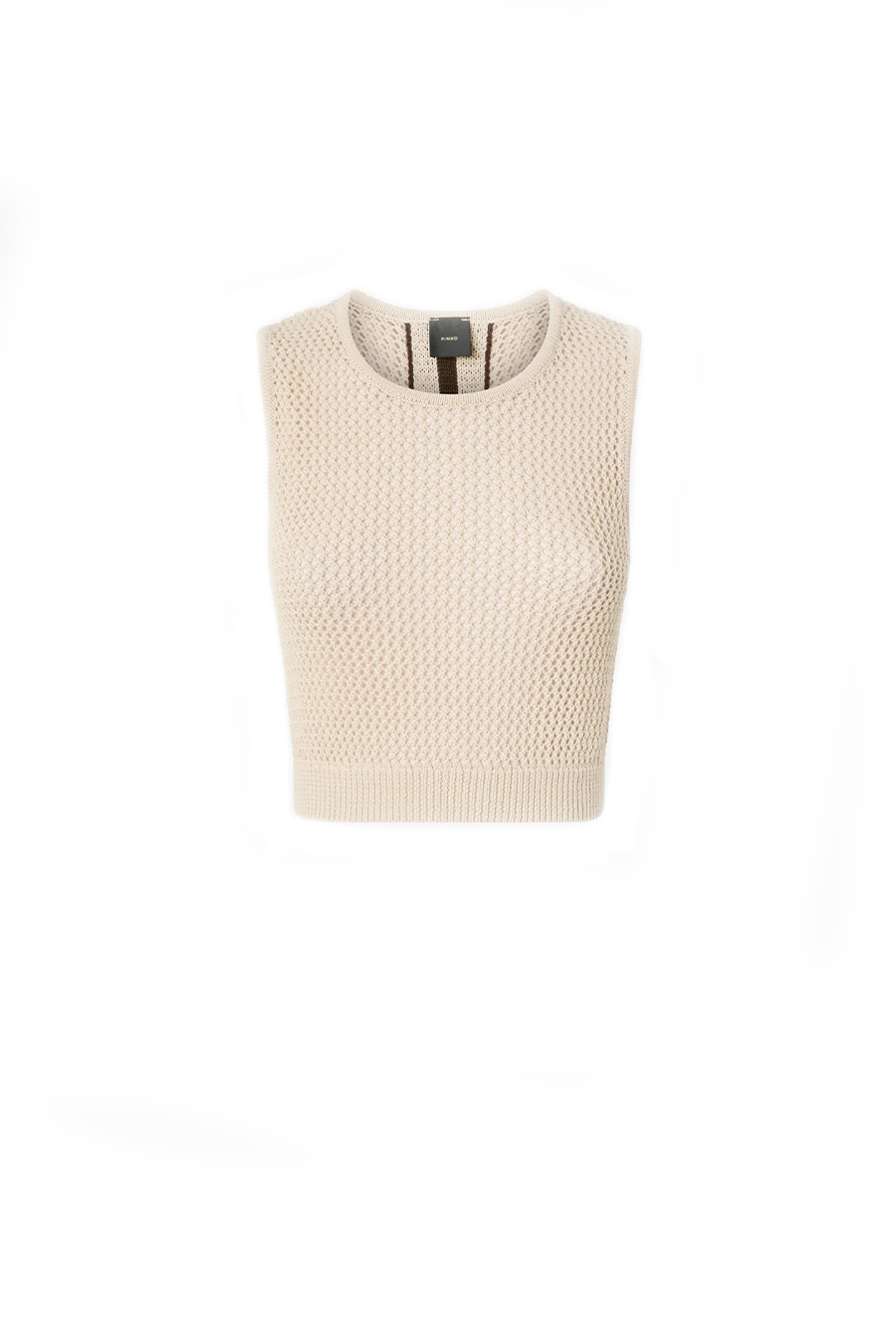 Pinko sleeveless crop top with racer-style back, made from soft, cool cotton blend with mesh-effect perforated detailing.
