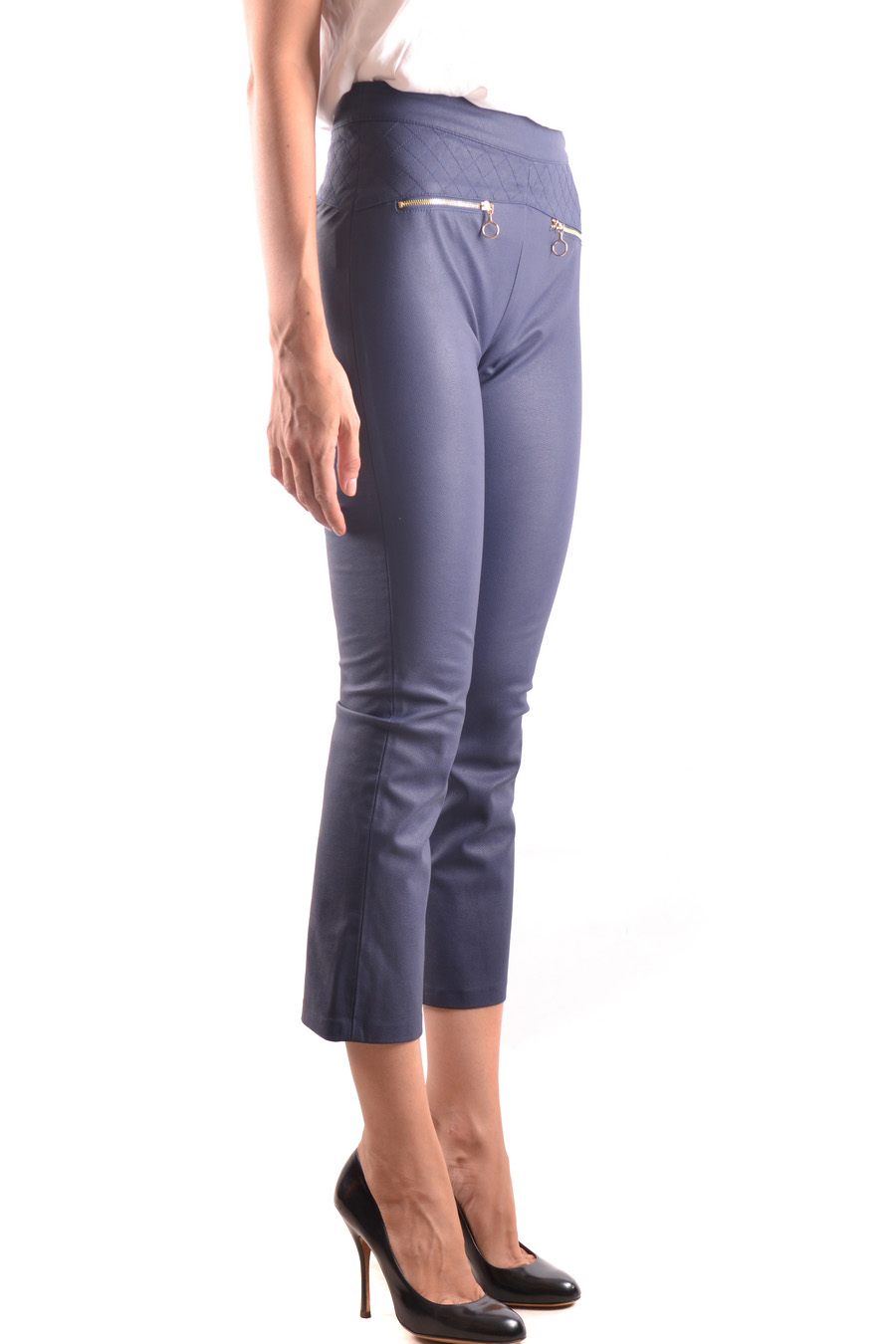slim fit fake leather trousers with gold zips in front
