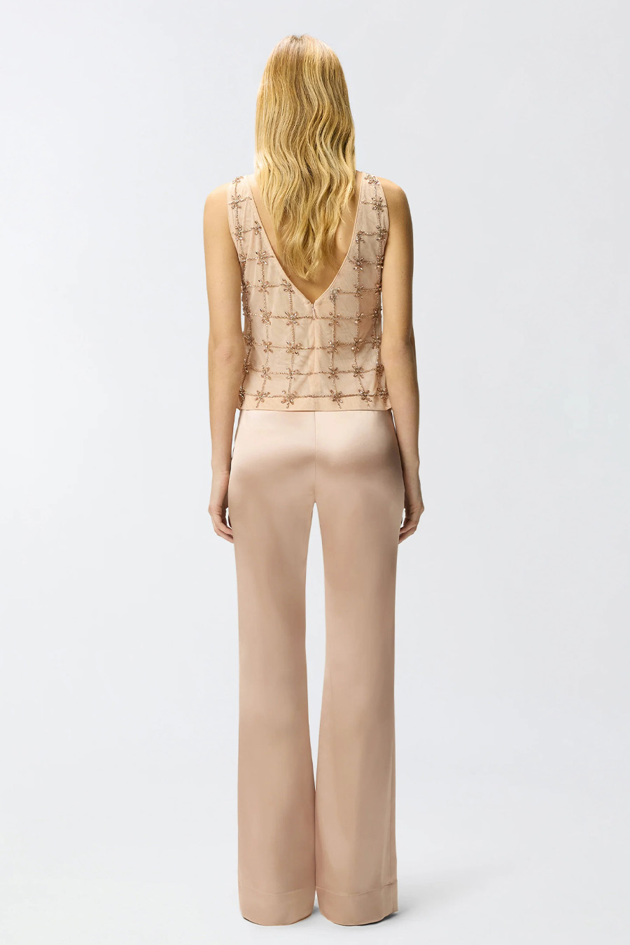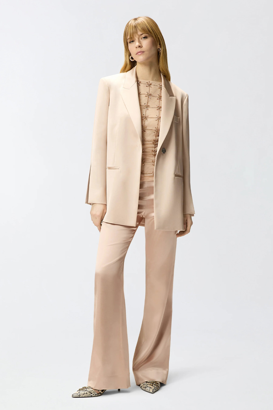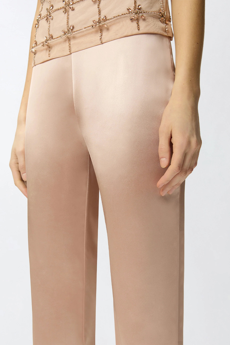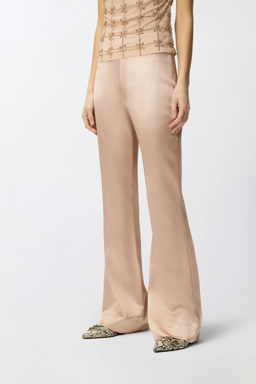 PINKO flared pants made from stretch satin with a distinctive shiny and silky effect, side zip.