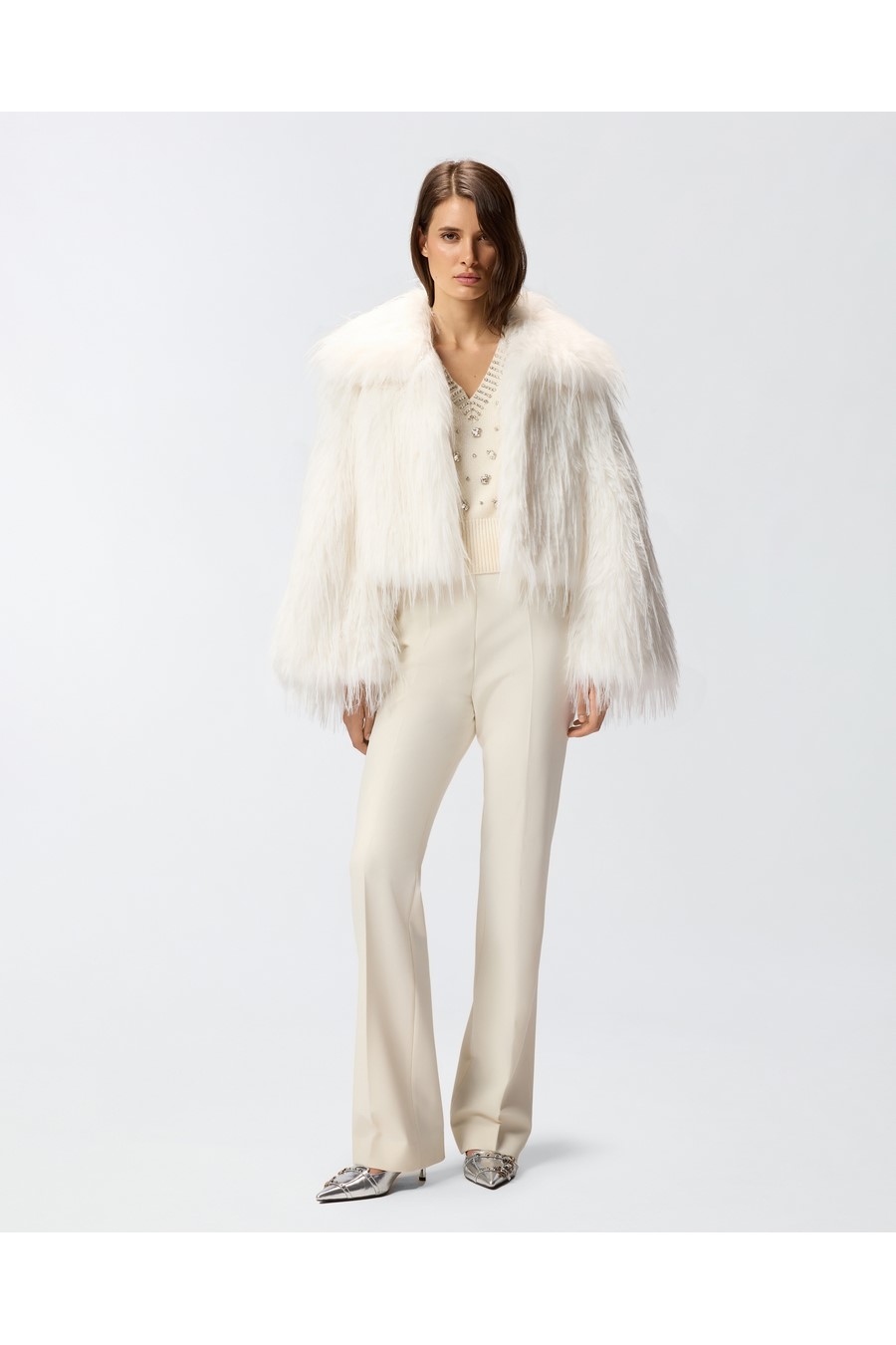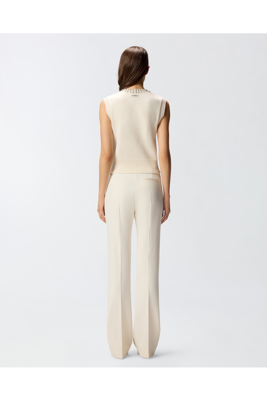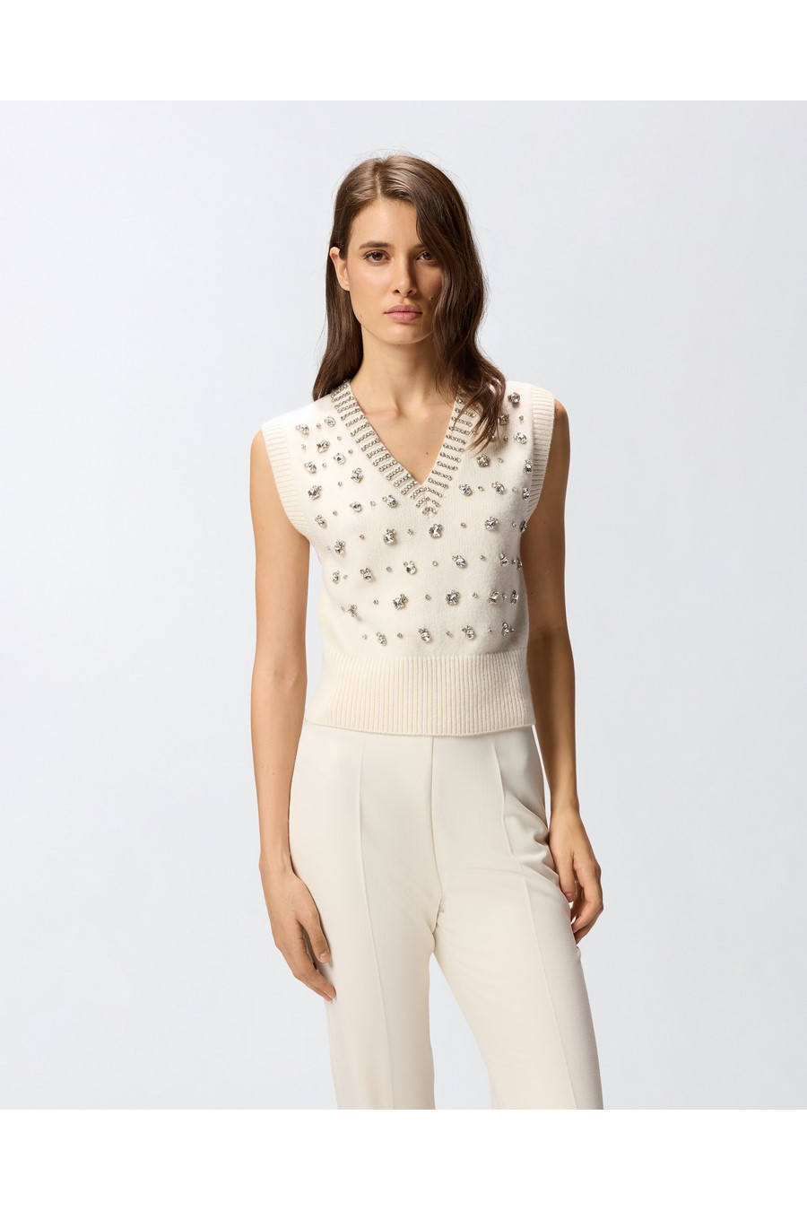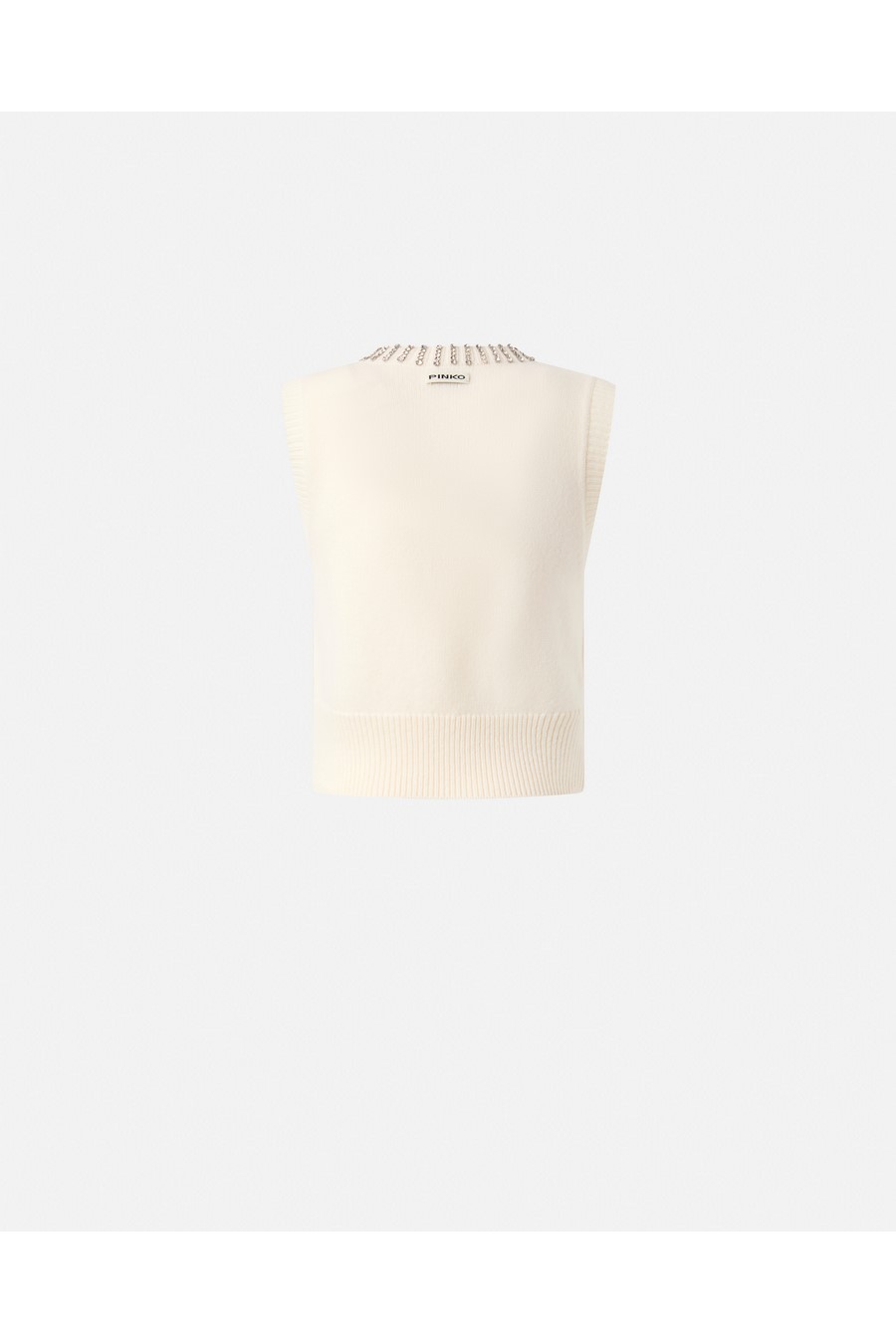 Pinko knitted waistcoat with rhinestones in wool blend with V-neck, ribbed hem and armholes, completed by a tone-on-tone label with PINKO logo lettering on the back.