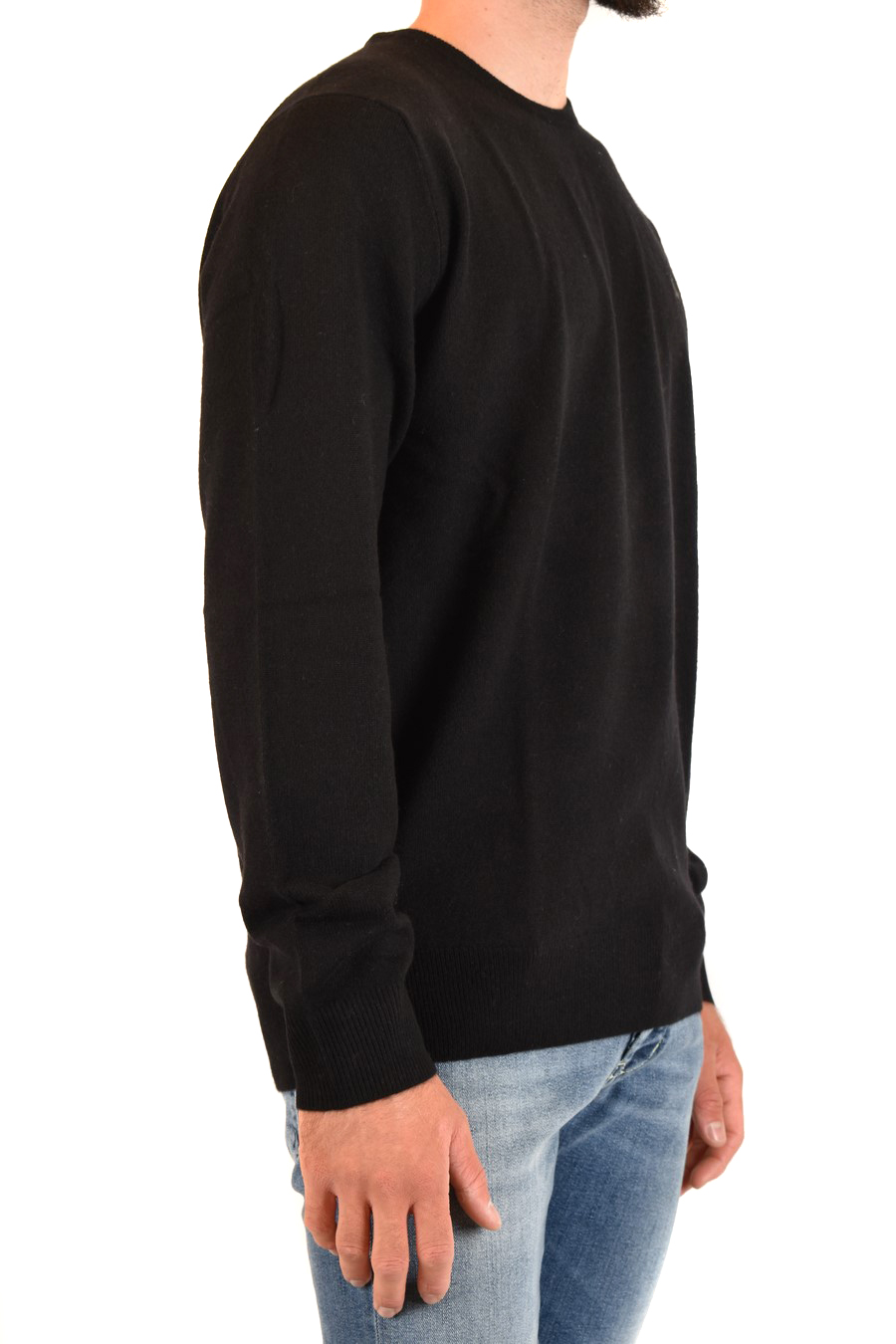 black merino wool sweater from Polo Ralph Lauren featuring round neck, long sleeves, grey logo embroidered on the side, slim fit